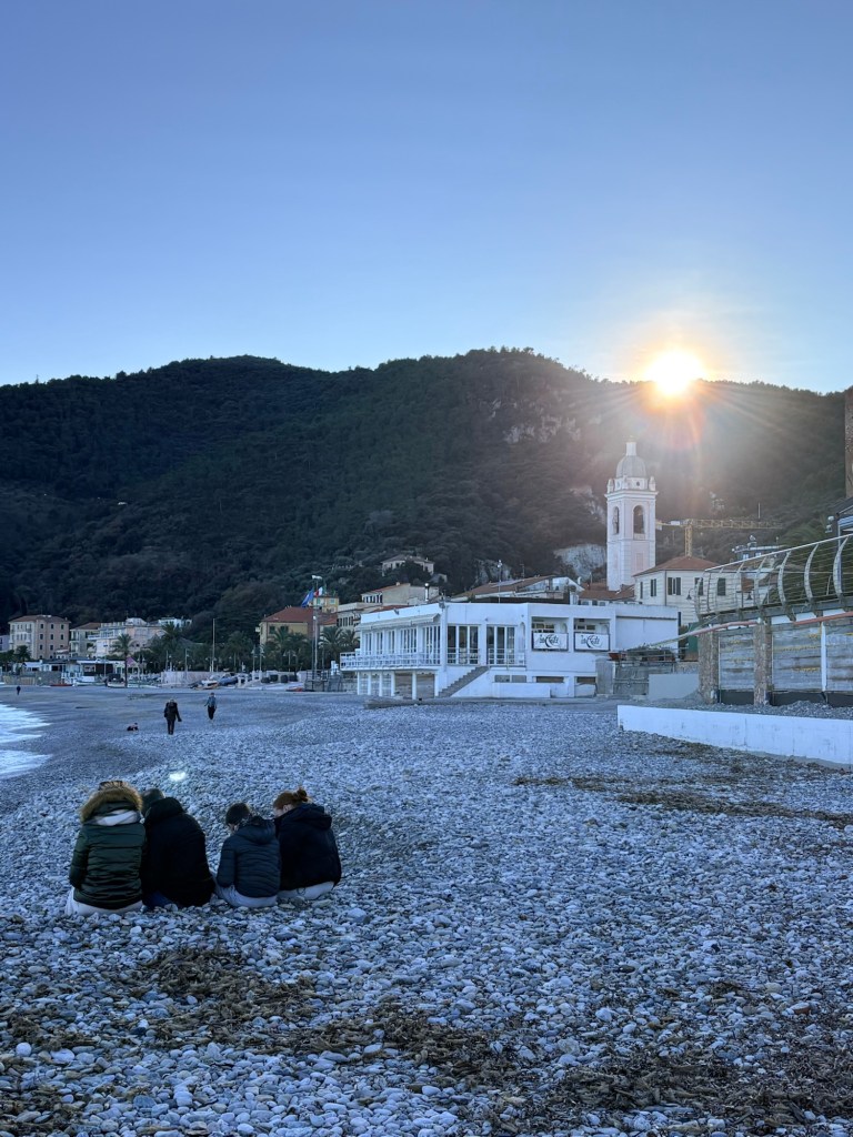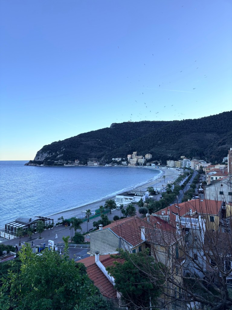 Tempo dell’operazione a piedi, un’ora e mezza, direi, ma non abbiamo calcolato nulla perché eravamo in modalità “ guarda che bello scorcio sul golfo”. Poi siamo andati a prendere qualcosa in uno dei tre bar aperti : quello dei motociclisti, quello sulla piazza, la pasticceria che fa buone cose, e questo in via Milano con le sciure di Noli che prendevano il the. Noi abbiamo preso un chinotto.