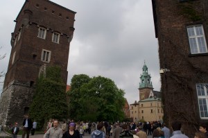 Il nucleo storico della città, antica capitale della Polonia, sta arroccato sul Wawel, il castello che domina la Vistola. Ha un aspetto rinascimentale, un cortile affrescato, il Duomo dove sono sepolti i re di Polonia, Kosciusko, e pure il maresciallo Pildsuski, che ha reso indipendente la Polonia dopo la Prima Guerra Mondiale. Ai piedi del castello, una piazza è dedicata ai caduti di Katyn. Il centro storico ha davvero molte chiese ( per contro il palazzo arcevescovile dove ha abitato Woytila prima e adesso monsignor Dzwiwitz – posto che si scriva così – è abbastanza qualunque, quel barocchino – quasi – neoclassico che abbiamo in piazza Marconi). Come si vede il tempo quel giorno era pessimo e questo ha in parte giustificato anche la visista al pantheon degli eroi polacchi, dove in effetti si soffocava per il caldo. In realtà Cracovia è costruita non solo accanto, ma sopra la Vistola – alcuni dei suoi rami sono stai interrati alla fine dell’Ottocento, ma si puo dire che la terra intera trasudi acqua. Era la festa nazionale e c’era moltissima gente.