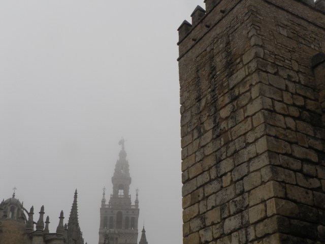 Se vi state chiedendo se la nebbia si è spostata, la risposta è sì, ci ha raggiunto a Siviglia. Si può dire che dal natio Mandrognistan, abbia rincorso il liceo scientifico in trasferta nella bassa spagnola, bassa che, ricordo ai digiuni di geografia, sta un po’ più giù di Catania. Più o meno. Però, nonostante il clima decisamente più mite, almeno a Siviglia – in realtà dappertutto con la sola eccezione di Granada- c’era la nebbia mattutina che velava la Giralda , e anche qualche bruttura assortita. Ho sempre avuto una certa diffidenza verso la Spagna. Però mia zia- la mitica zia Ester, era stata anche a Siviglia, e nell’altrettanto mitica Plaza de Toros, aveva visto il Cordobès, che è come dire aver visto Pelé, Maradona e pure Messi. Perché torear a Siviglia è come essere a Wembley, a San Siro, al Maracanà ( a proposito, i Galacticos, fuori Madrid, stanno sulle tortillas un po’ a tutti quanti, pare). I tori, per quel che mi riguarda, possono stare liberi e felici, e Siviglia ha fascino, ma non quanto le altre città dell’Andalusia che ho visto: la Giralda, che è la banderuola collocata in cima alla torre già minareto della moschea, l’Alcazar e i suoi giardini, e le sue maioliche, la sua commistione di gotico e moresco, le viuzze della scomparsa juderia, dove stanno ricostruendo a poco a poco una storia millenaria che si è interrotta bruscamente per non riallacciarsi veramente mai, il fiume e i suoi quartieri alternativi, il Mirador Parasol, il simbolo di quell’esposizione universale degli anni Novanta che ha tirato fuori la città da un abbandono un po’ delabré.( lo dice il grande Longo che in Spagna è di casa), la fintissima Plaza de Espana, ma tanto pittoresca. E quasi non ci si ricorda che qui è nato Don Giovanni (il Burlador de Sevilla, appunto). Si beve bene e si mangia anche meglio, se si presta l’orecchio al parlare degli avventori – e se senti parlare spagnolo è meglio.