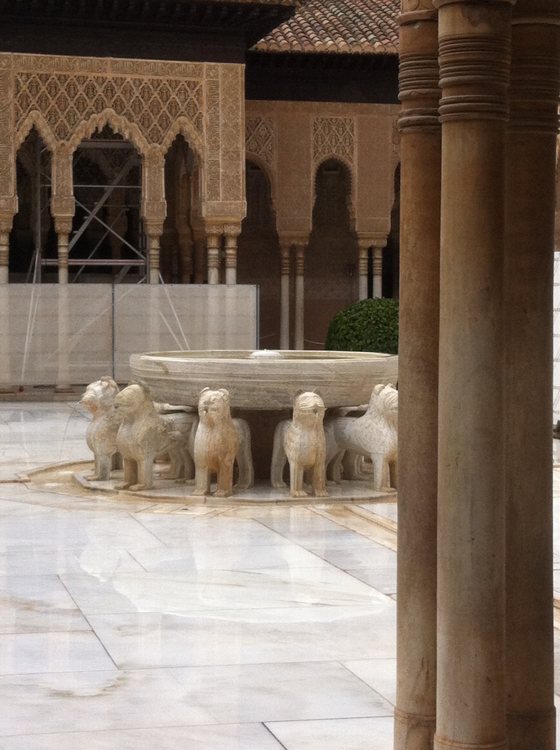 “Ah, sei fortunata, a Granada in questa stagione vedrai la Sierra Nevada con la neve (appunto…Nevada, neve, haha)”. Averla vista, la Sierra Nevada, uno dei suoi picchi o un’altra altura tanta da poter essere tacciata almeno di Appennino. Invece niente. Oltre al tempo decisamente freddino, appunto per la vicinanza delle montagne, la Sierra è rimasta ben nascosta dietro una coltre di nebbia. Favoriti dall’albergo vista sull’ Alhambra, ci siamo goduti il centro storico e la fortezza. Meglio ricordare , tuttavia, che se la discesa è brevissima – in dieci minuti si scende alla Plaza Nueva, la risalita dura il triplo, secondo la consueta ratio della salita, ossia dai trenta ai quaranta minuti a seconda di quanto ti basta il fiato (e a me partita con una congrua scorta di antibiotici, antinfiammatori, antitutto, il fiato non bastava; o meglio dopo aver fatto la salita due volte in un giorno, alla terza ho salutato gli astanti e preso un taxi.) Non solo, oltre ad essere decisamente conservatori- Granada fu una delle prime città a consegnarsi a Franco, e anche a non saperlo, è difficile ignorare la lista di poveri parroci vittime della furia dei rossi i cui nomi sono scolpiti a fianco dell’altar maggiore in Cattedrale (scritto proprio la furia del comunismo, alla faccia del politicamente corretto)- oltre a essere decisamente conservatori, dicevo, gli abitanti di Granada sono assai poco malleabili , resilienti, quel che volete:abbiamo rischiato di non poter visitare l’interno del palazzo del Sultano, una meraviglia di fontane e decorazioni, perché qualcuno a monte aveva sbagliato la data della nostra prenotazione. Il consiglio al viaggiatore, che sitrova in molte guide, ma è veramente da seguire, è prenotare la visita online. L’Alhambra ha un numero chiuso di visitatori giornalieri, e venduta la quota di biglietti non fanno entrare più nessuno. Veramente. Per questo contrattempo, abbiamo perso la visita al palazzo del Generalife, e pazienza, ma siamo riusciti avedere il resto e il tramonto rosato sulle pietre della fortezza dell’Alcazaba ha un fascino particolare. Ma Granada è anche il pittoresco quartiere arabo dell’Albaycia, dove le case costano molto più di un attico con vista Colosseo, la Cattedrale, le tombe di Ferdinando e Isabella nella Capilla Real, le viuzze del centro storico, il dolce Pio V di pan di Spagna e crema, che si chiama così in onore del papa Pio V, che a sua volta era originario del natio Mandrognistan (tout se tient). Bocadillos di jamon serrano, caffè, acqua da un litro e mezzo, dolci, 14 € in una pasticceria della Reyes Catolicos piena di boiseries e stucchi (in quattro, ossia tre euro e rotti a persona). Un gelato e un Negroni vista tramonto su Palazzo Carignano, 22€, in una pasticceria piena di boiseries e stucchi a Torino (Pepino).