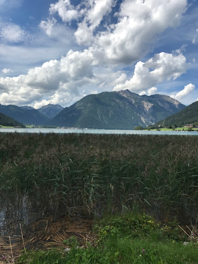 Vedere gli stessi luoghi che sono stati i tuoi per tanti anni con occhi diversi oggi , anche quelli del cane Tobia, mi fa uno strano effetto di straniamento. È Ferragosto , il tempo è bello, siamo all'Achensee che è un classico ferragostano, non c'è vento o quasi, nemmeno molta gente, e abbiamo mangiato un panino sedute in meditazione su una panchina. Il panino viene dal buffet self service dell'hotel, perché se no si mangia troppo. Almeno tre dei miei cari scomparsi sarebbero inorriditi per ragioni diverse ( per la scarsa eleganza, o piccineria) ma credo, ormai, che si possa essere epicurei in modi diversi, in età diverse. O forse il mio modo di essere epicurea è camminare (alla fine cinque km più i meno- escludendo le divagazioni del cane) e un bel Campari sprizza, che si è piemontesi, infine ( per favore non perdiamoci in commenti su chi ha inventato il vermuth, chi il Campari, ecc.). Notazioni sociologiche: meno mussulmane velate, più ebrei ultraortodossi usciti straight from Mea Shear'im: boh. Notazione sociologica seconda: sulla lunga e bella ciclabile del lago l' ottanta per cento dei pedalanti sfreccianti a cento all'ora barava ( compresi gli ultraortodossi e i bambini): cioè aveva la batteria. Ce l'ha il cugino piacione e sfreccia intorno alla campagna del natio Mandrognistan lamentandosi quando la batteria non si è ben caricata …ora noi si è fatta la nostra bella camminata senza barare- per modo di dire, Luisa ha la camminata dopata dal segugio che tira, di solito in direzione opposta alla nostra. Però per favore non millantiamo pedalate che non ci sono