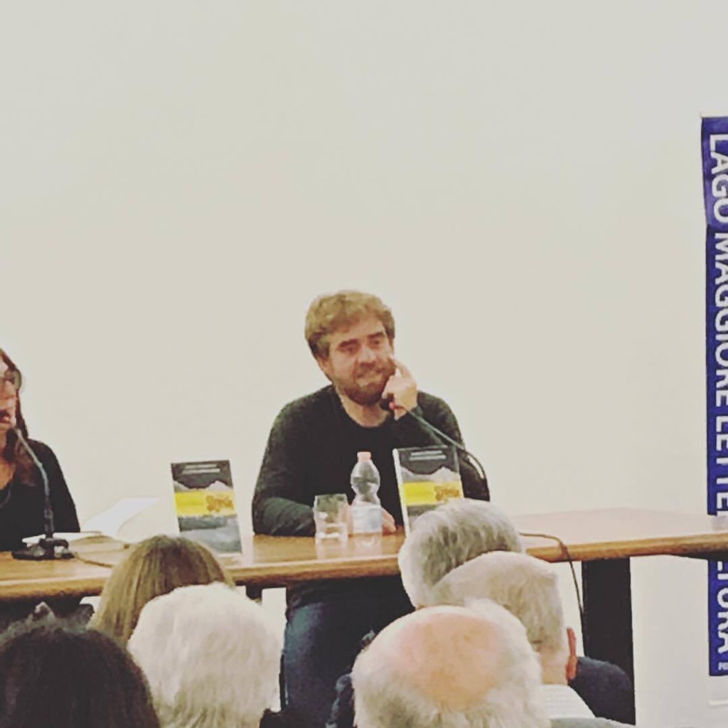 Con questo post iniziamo nel migliore dei modi la nuova stagione ( che conduce al decimo anno di vita di questo blog), nel migliore dei modi per me lettore e spettatore e blogger. Questo è Paolo Cognetti, che a Verbania, grazie alla libreria Spalavera ha presentato il suo libro Le otto montagne , nell’ ambito del tour successivo al premio Strega ( che ha sponsorizzato l’evento con un piccolo rinfresco. Avevo saputo già da maggio dell’evento, e anche se sfortunatamente non sono riuscita ad andare ae all’alpe Spalavera per le altre presentazioni, mi ero segnata in agenda questo come evento imperdibile: un romanzo mainstream ambientato in montagna, in una montagna che fra l’altro conoscevo bene, da parte di un autore che per me era sconosciuto ma che stava ricevendo ottime critiche. Poi ha vinto il premio Strega, l’autore da mainstream è diventato popolare, io ho letto il libro in estate perché gentilmente mi è stato prestato, contravvenendo alla mia abitudine di non leggere il libro del momento, cosa non difficile condiderando la situazione dell’editoria italiana, e mi è piaciuto. Al di là delle indubbie qualità di scrittura, molte cose del libro mi sono risonate… Il rapporto con il padre, l’idea della montagna come pellegrinaggio e rifugio (leggendolo la prima cosa che mi era venuta alla mente era il pellegrinaggio buddista al Kailash e durante la conferenza Cognetti lo ha confermato, rendendomi molto orgogliosa di me stessa). Lo stesso percorso di avvicinamento /allontanamento dall’esperienza della montagna ha in qualche modo una valena universale: dai venti ai trent’anni si supera il rapporto con i propri genitori e con questo distacco a volte si abbandonano anche ( o si ripensano ) esperienze legate all’infanzia. Con la maturità inqualche  modo si torna  a se stessi. Al core. Cognetti nella sua simpatica conversazione ricorda di quando vivere a Milano aveva prosciugato la sua ispirazione, e solo il ritorno in montagna ha rivitalizzato la sua scrittura. La  polarità montagna città ha generato una maggiore  ispirazione, e ora anche un ritorno all’impegno politico ( politica non è una brutta parola) nella salvaguardia della valle delle Cime Bianche.