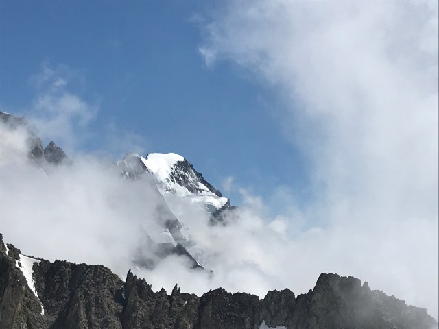 – quelli che siamo a 3000 metri, ma il Monte Bianco è quello lì (pausa) . Credo. ( lo giuro, lui e lei erano di fianco a me. Trentenni, lei con l’aria spaesata di chi non sa dove si trova).
