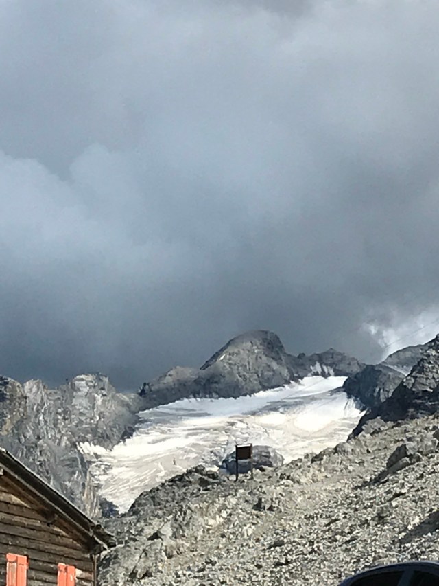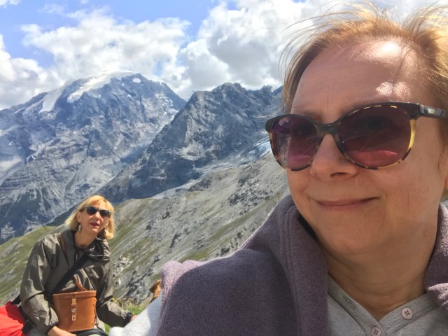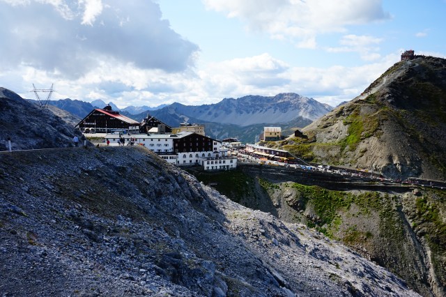 Ok, eliminiamo subito la diatriba su ciclisti motociclisti camperisti dischi volanti (in effetti mancavano solo loro). La strada è sufficientemente ampia, non amplissima, ma ci stanno tutti, basta che ciascuno stia nella sua corsia (ma io non capisco i motociclisti come dice Luisa, che in effetti vive con uno di loro, che allo Stelvio va regolarmente a fare i raduni – molto meglio di Castellazzo, con tutto il rispetto). Volar giù è tanto facile. Guardate la seconda foto dal basso e ditemi se non è uno spettacolo- questo è il versante Trentino. E la strada è rimasta sostanzialmente, nell’impianto, quella ottocentesca, quindi un capolavoro di ingegneria. Sulla cima del passo c’è una rete di sentieri, che voglio assolutamente esplorare la prossima che potrò passarci – per Tobia sono un pò pericolosi, soprattutto se si lancia ad inseguire i gracchi o le marmotte. Il paesaggio è assolutamente lunare, da alta montagna, la morena del ghiacciaio copre praticamente l’intero pianoro, e si può immaginare che anni fa la neve fosse a quota molto più basso. Chissà per quanto ancora si potrà sciare d’estate sul ghiacciaio…la funivia funzionava a pieno regime e i 3000 metri erano sorprendentemente vicino. Fantastico. Un suggerimento: abbiamo parcheggiato dopo due tornanti, per carità benissimo fare un bel pezzo di strada panoramica, ma abbiamo scoperto che il parcheggio interno della funivia era praticamente deserto…certo avevo qualche remora a passar sopra con la macchina ai pedoni. Ci sono moltissimi ristoranti e noi abbiamo mangiato molto bene sulla terrazza dell’hotel Pirovano ( questo il sito ), dove nonostante fosse abbastanza tardi ci hanno servito lo stesso- certo i pizzoccheri di loro hanno questa tendenza a sedersi sul tuo stomaco con la delicatezza di un mattone, ma una passeggiata e una buona tisana al Tibet hanno risistemato lo stomaco di tutte e due. Una giornata di sole accecante, anche se con qualche nuvola, e un altro tassello sulla lista dei luoghi in cui devo tornare assolutamente, soprattutto per esplorare le trincee della prima Guerra Mondiale che sono ancora visitabili.