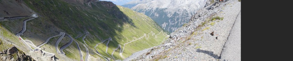 Ok, eliminiamo subito la diatriba su ciclisti motociclisti camperisti dischi volanti (in effetti mancavano solo loro). La strada è sufficientemente ampia, non amplissima, ma ci stanno tutti, basta che ciascuno stia nella sua corsia (ma io non capisco i motociclisti come dice Luisa, che in effetti vive con uno di loro, che allo Stelvio va regolarmente a fare i raduni – molto meglio di Castellazzo, con tutto il rispetto). Volar giù è tanto facile. Guardate la seconda foto dal basso e ditemi se non è uno spettacolo- questo è il versante Trentino. E la strada è rimasta sostanzialmente, nell’impianto, quella ottocentesca, quindi un capolavoro di ingegneria. Sulla cima del passo c’è una rete di sentieri, che voglio assolutamente esplorare la prossima che potrò passarci – per Tobia sono un pò pericolosi, soprattutto se si lancia ad inseguire i gracchi o le marmotte. Il paesaggio è assolutamente lunare, da alta montagna, la morena del ghiacciaio copre praticamente l’intero pianoro, e si può immaginare che anni fa la neve fosse a quota molto più basso. Chissà per quanto ancora si potrà sciare d’estate sul ghiacciaio…la funivia funzionava a pieno regime e i 3000 metri erano sorprendentemente vicino. Fantastico. Un suggerimento: abbiamo parcheggiato dopo due tornanti, per carità benissimo fare un bel pezzo di strada panoramica, ma abbiamo scoperto che il parcheggio interno della funivia era praticamente deserto…certo avevo qualche remora a passar sopra con la macchina ai pedoni. Ci sono moltissimi ristoranti e noi abbiamo mangiato molto bene sulla terrazza dell’hotel Pirovano ( questo il sito ), dove nonostante fosse abbastanza tardi ci hanno servito lo stesso- certo i pizzoccheri di loro hanno questa tendenza a sedersi sul tuo stomaco con la delicatezza di un mattone, ma una passeggiata e una buona tisana al Tibet hanno risistemato lo stomaco di tutte e due. Una giornata di sole accecante, anche se con qualche nuvola, e un altro tassello sulla lista dei luoghi in cui devo tornare assolutamente, soprattutto per esplorare le trincee della prima Guerra Mondiale che sono ancora visitabili.