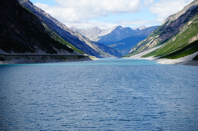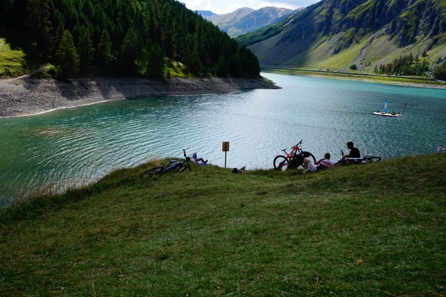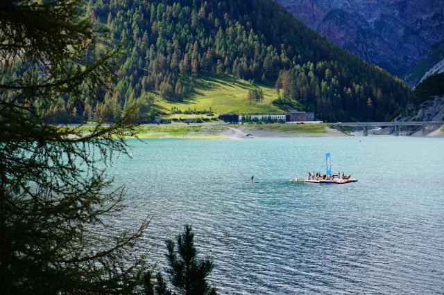 A Luisa non piace Livigno. Io come sapete ci sono stata a Maggio e mi sono innamorata (di nuovo, ormai ho l’innamoramento facile, pare) così mi ci sono messa d’impegno per farle cambiare idea. Andarci a Ferragosto forse non è stata un’idea felicissima, perché l’affollamento fa sovente saltare i nervi alle persone (fatto), i cani litigano (fatto) c’è una coda enorme alla latteria per mangiare il gelato (fatto, o almeno abbiamo aggirato la coda). Alla fine però mi ha dato ragione. Perché siamo andate al lago, dove io mi ero solo affacciata, invece dopo aver convenientemente parcheggiato la Giulietta, abbiamo fatto tutta la strada sino al ponte delle Capre, dove partono tutte le belle escursioni verso l’interno. Peccato che prima di partire hai nei piedi già tre quarti d’ora di strada, ma la vista del lago è davvero una favola. Ci sono persino i pedalò. Non go visto nessuno buttarsi in acqua, però, e non ho capito se è vietato , è pericoloso ( ma lo spericolato di turno non avrebbe avuto problemi) o se è quel tipo di acqua da trenta secondi, poi congeli ( e anche qui, ricordate il vichingo che lo scorso anno si è buttato nel lago Checrouit). Ha fatto pace persino con lo shopping ( profumi, cosmetici e borse… Luisa, quando vuole, è molto peggio di me da questo punto di vista), forse perchè le persone che lavorano nei vari negozi che abbiamo visitato, anche quelli in cui non abbiamo comprato niente, sono state gentili e prodighe di spiegazioni.