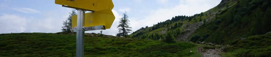 Così ho preso lo Zirbenweg, che è il sentiero balcone che percorre le due Montagne, il Pascherkofel e lo Glungezer, in mezzo a praterie di rododendri, nonostante la temperatura non proprio mite ( stamattina, l’aria condizionata impostata sulla temperatura del natio Calcutta Mandrognistan si è trasformata in riscaldamento). Sono arrivata sino a Boscheben, cioè il luogo da dove sarei scesa dallo Jochleitensteig.