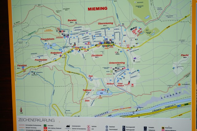 Il cartello che ho fotografato è sufficientemente chiaro. Mieming è un insieme di frazioni, il rundweg è la linea rossa tratteggiata che esce dai contorni della cartina, io ho fatto, Zein, See, Weidach e ritorno sulla provinciale, la Mötzerstrasse, che per altro non occorre attraversare perché le stradine passano sotto. Ho camminato due ore ( e non da sola) in assoluta beatitudine contemplando i campi d’orzo pieni di papaveri. Qui la campagna è sacra ( ci sono cappelle ed edicole dappertutto) ed è tenuta in ordine spettacolare.
