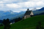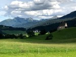 Silenzio e verdissimi prati, che invogliano a lunghe passeggiate. Abbiamo visto in mezzo ai campi una chiesetta e abbiamo deciso di raggiungerla, e qui abbiamo scoperto che il modo più semplice per andare da a a b non è una retta, ma un circolo, oppure scavalcare la recinzione elettrificata di un prato…