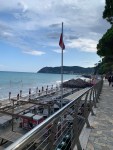 Alassio ė veramente una bella città. Poi quando sono entrata nel budello di venerdì sera, ho cercato di scappare. Troppa folla. In spiaggia, nei nostri bagni almeno, i bagni Palace all’ in circa trenta metri in linea d’aria da casa nostra, c’era gente ma non cosī vicina da dover guardare lo schermo dei loro cellulari. Abituata a Chiavari da piccola, e a Mentone poi e al loro tremendo acciottolato assolutamente deleterio per le giunture, la spiaggia di sabbia oggettivamente ė più comoda. Peccato che la suddetta sabbia te la porti in giro nei secoli dei secoli, nonostante la doccia ai bagni e quella a casa. Però cammini, nell’ acqua, e tanto. Noi in media tre km la mattina e altrettanti al pomeriggio. Poi venerdì , cioė due giorni fa in un pomeriggio di tempo incerto siamo andate a piedi sino a Laigueglia e ritorno lungo la passeggiata a mare e i km tra una storia e l’altra sono diventati 12. Mia cugina Millina per fortuna era stanca quanto me ( anche se a differenza mia ė stata una colonna del CAI). Alla sera, alla festa di Borgo Coscia abbiamo speso i nostri cosciarelli ( la moneta locale) in polpo con le patate della trattoria Astigiana ( ogni esercizio del Borgo propone una specialità e devi cercare il chiosco giusto, dopo ovviamente aver cambiato alla cassa euro in cosciarelli.)