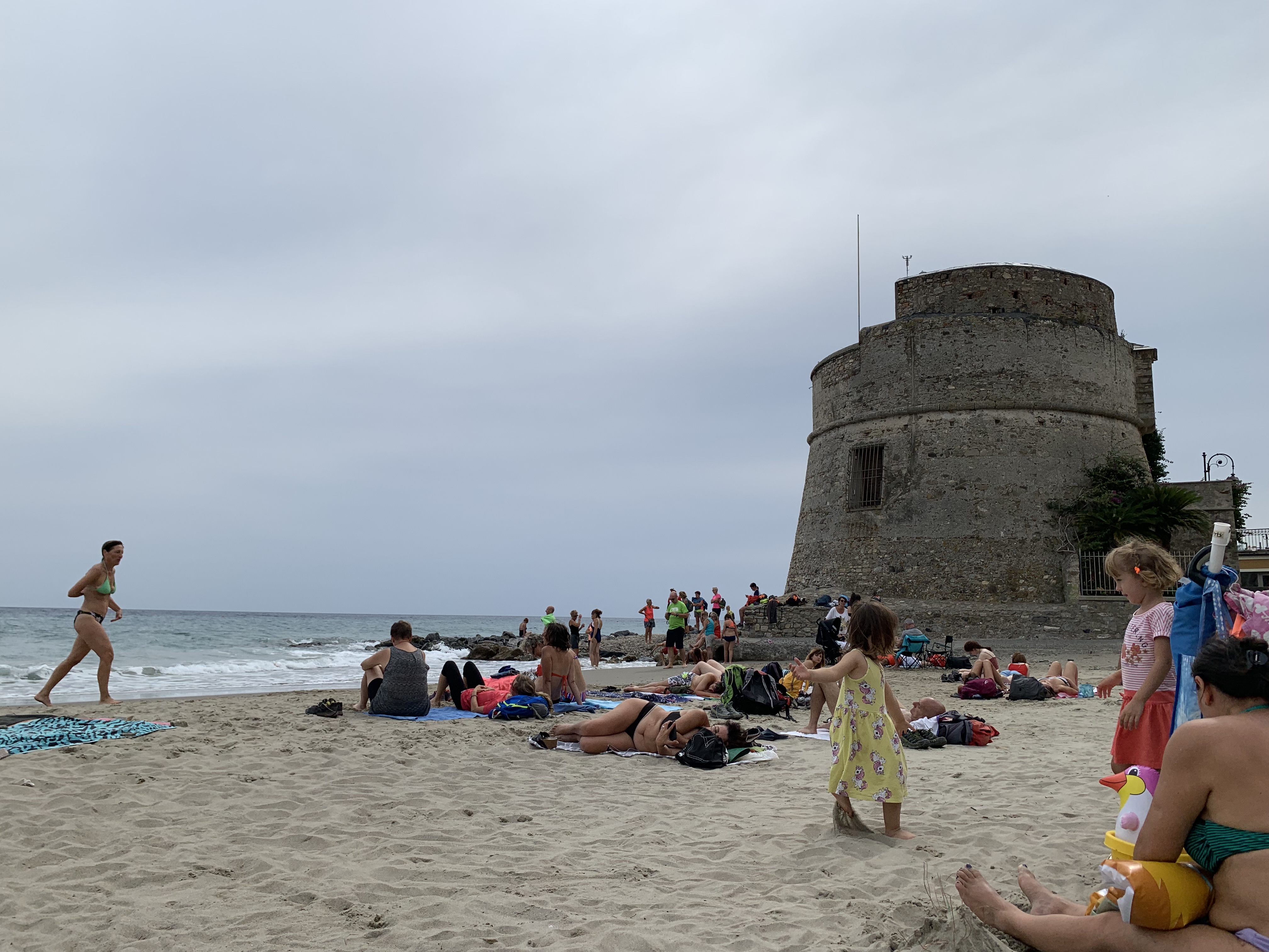 Oddio è stata più o meno un’odissea di incidenti, autostrade chiuse, code, casini, soste pipì d’emergenza, confabulazioni con il vigile urbano sul pagamento del parcheggio con app (ad Alassio come altrove paghi anche l’aria che respiri) e finalmente mi sono buttata in acqua. Buttata… al primo impatto freddina, onde alte, bandiera rossa, spiaggia comunale oltre il bastione saraceno di borgo Coscia già smantellata ( tecnicamente la stagione balneare è finita il 15). Però dopo un po’ si stava bene, diventava quasi calda.
