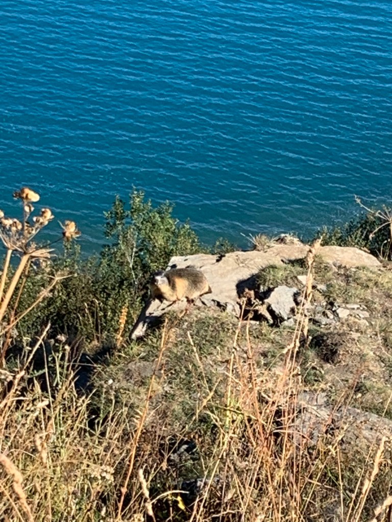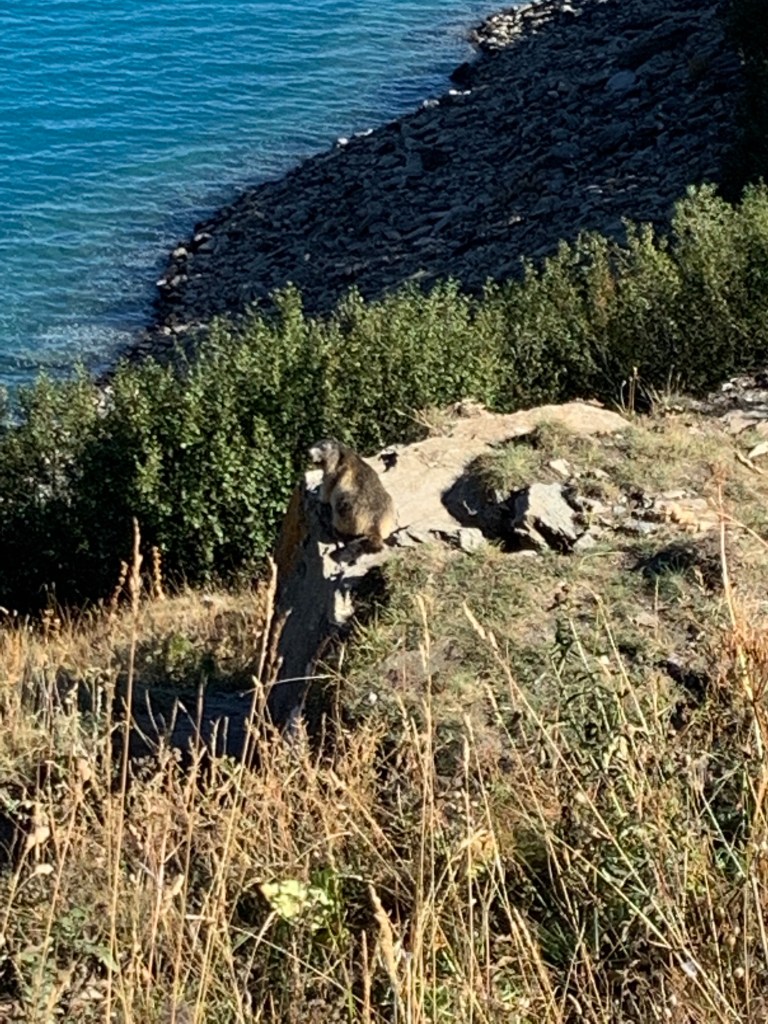 E comunque, la calma passeggiata di quasi sei km che porta al rifugio – ora è chiuso – è particolarmente rilassante in questo periodo dell’anno, quando la temperatura è mite, il sole non è troppo feroce a duemila metri, e magari non c’è troppo vento, e si cammina con bel passo cadenzato. Poi senti il fischio e ti fermi. Le marmotte le trovi in pratica dappertutto lungo il percorso, dappertutto nella conca del lago , e attenzione sulla départimentale perché al tramonto attraversano anche la strada per andare a bere. Sono uno spettacolo rilassante. Molto rilassante. Marmotta – therapy