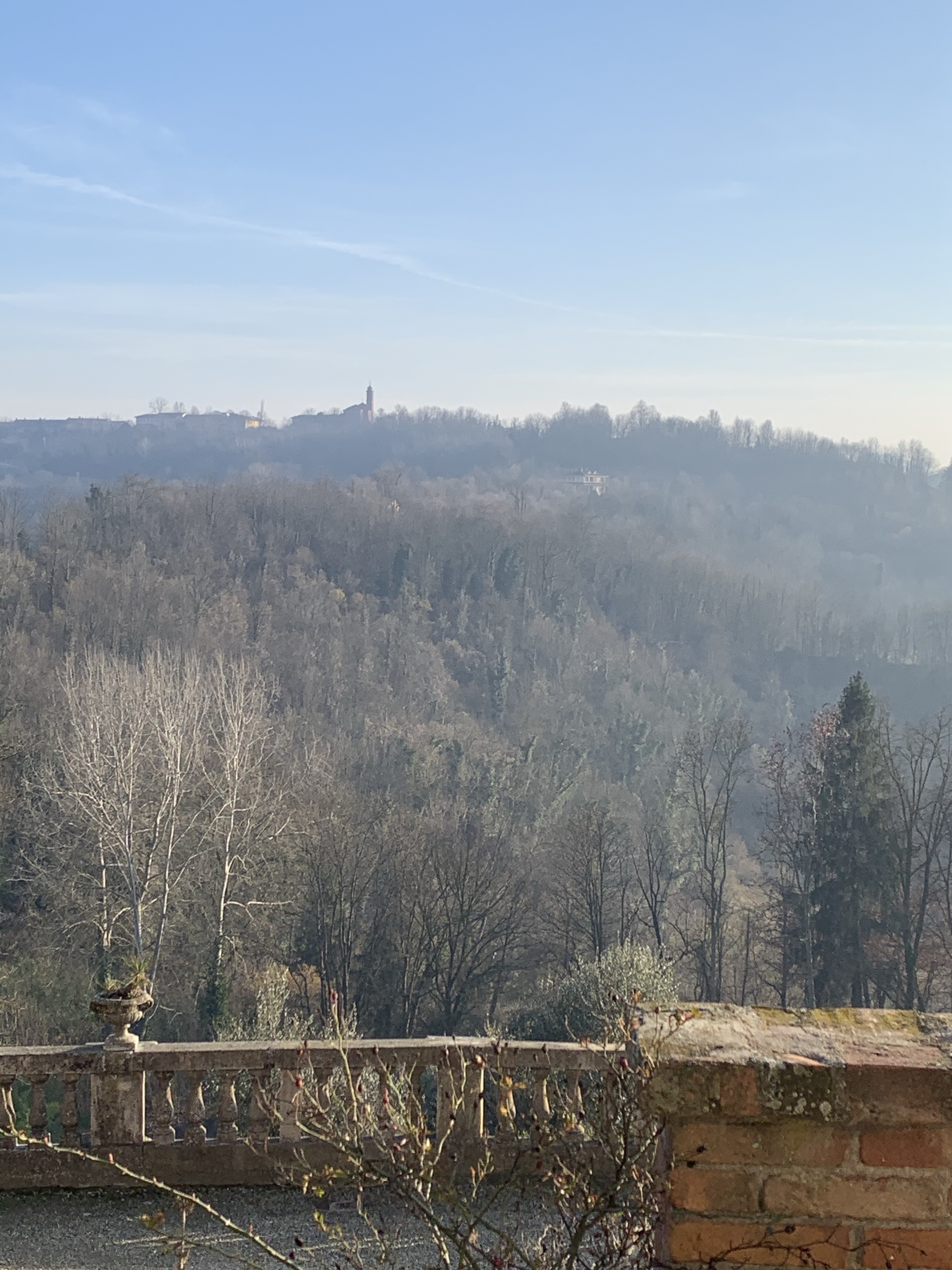 Comunque, ben alleggerita ho tenuto il passo dell’istruttrice su per via Temlino, sino all’incrocio con via Garibaldi, dove noi invece abbiamo preso lo sterrato che ci ha portato direttamente alla chiesa di Marcorengo, San Pietro, dove ho fatto in tempo a godermi la spiegazione e la visita alla chiesa fatta dalla locale pro loco ( la chiesa è davvero un gioiellino barocco). Da Marcorengo, tra l’altro ho visto che ci sono diversi itinerari, per cui credo che tornerò ad esplorarli. E c’era una vista spettacolare, che sarebbe stata anche migliore se non ci fosse stata ancora della foschia ristagnante sulla pianura