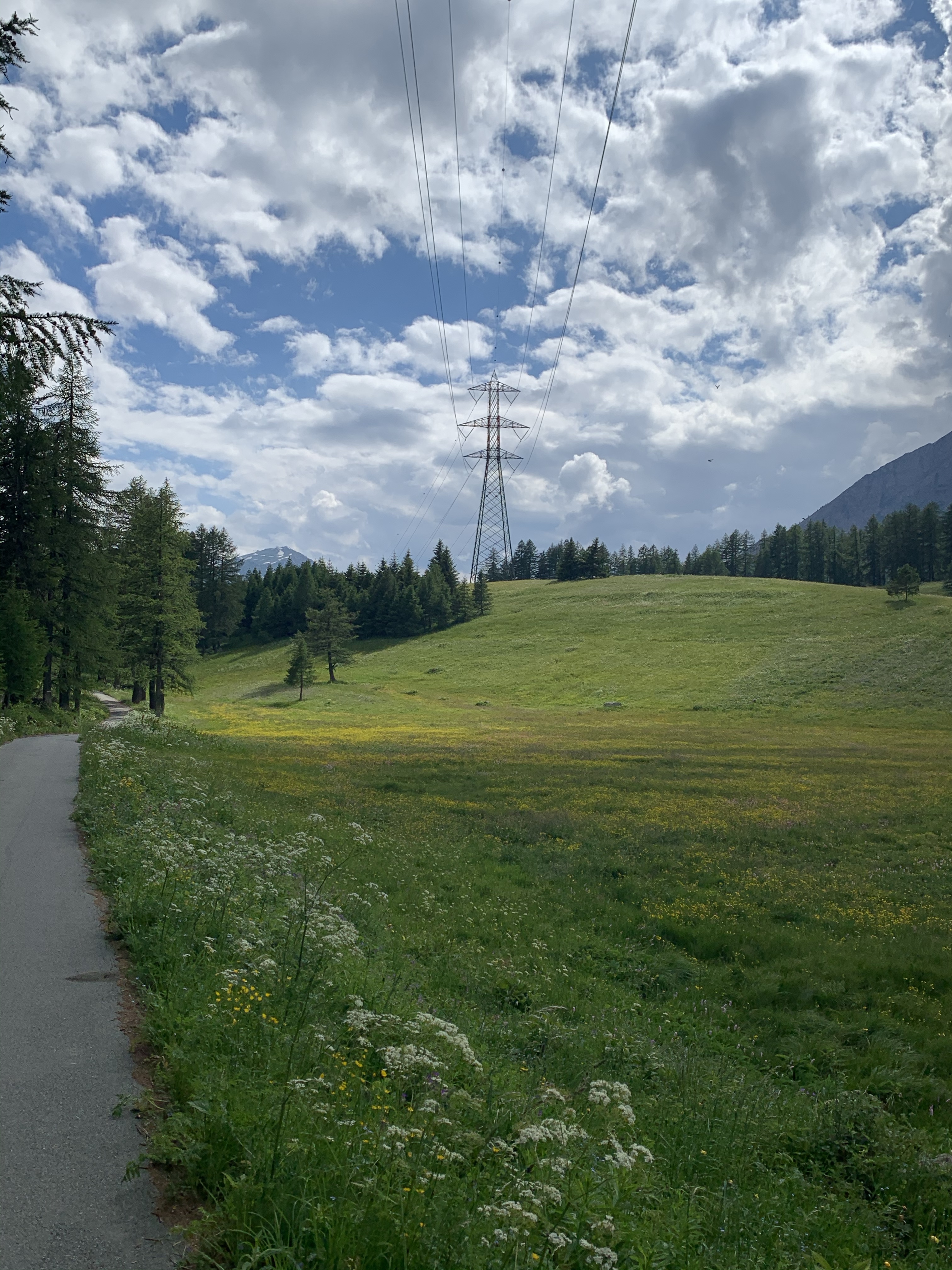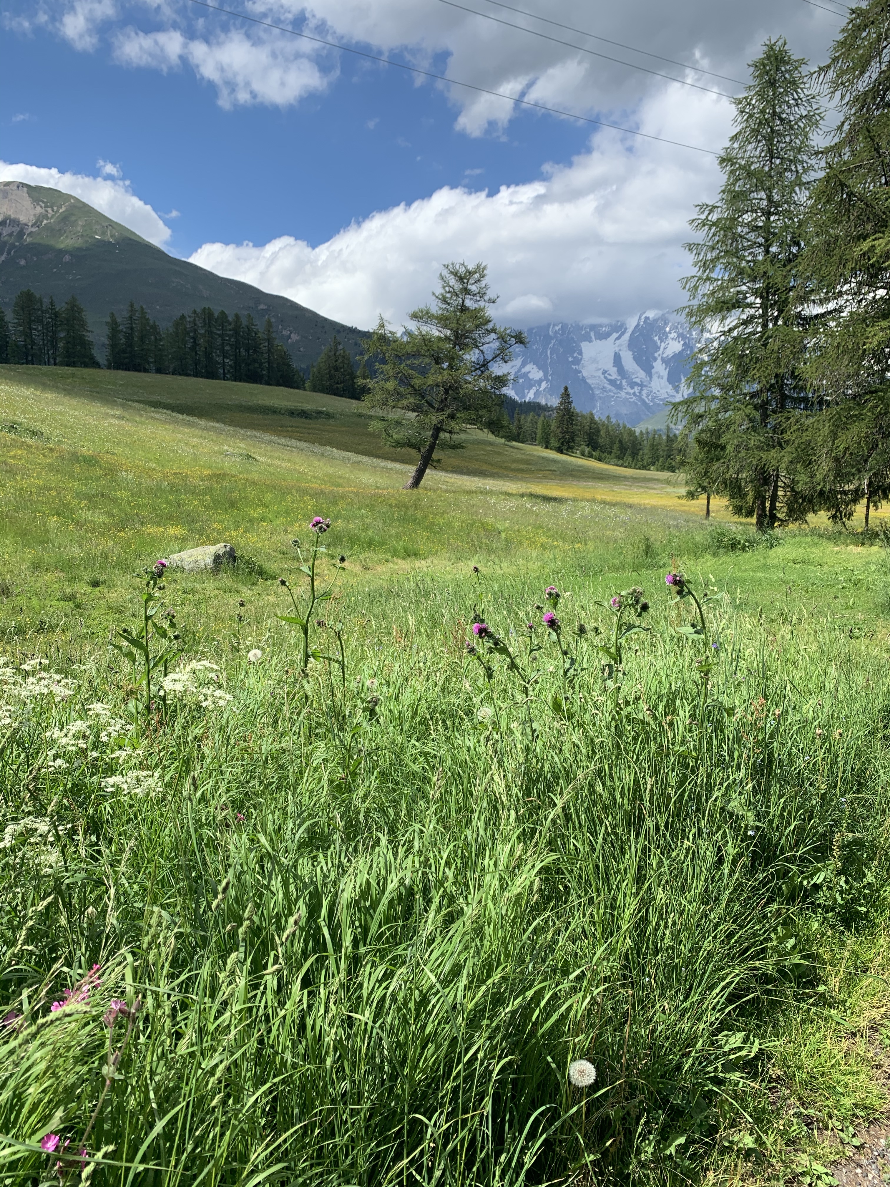 Petosan è una vasta conca prativa, un pascolo basso, dove le mucche vengono dopo la desarpa, tra La Thuile e il colle San Carlo. C’è un itinerario con le ciaspole, invernale , che si segue anche in estate, ma io ho fatto un giro ad anello del tutto casuale, trovando nel bosco un altro sterrato e finendo poi sulla provinciale da cui sono scesa al parcheggio di Petosan. Se volete degli itinerari più strutturati, che non è quello che cerco io quando vado lì, da località Le Granges come dal colle San Carlo si possono raggiungere le fortificazioni del principe Tommaso ( le guerre di successione sono passate anche di qui) e dal colle il lago d’Arpy, il colle della Croce e tanto altro