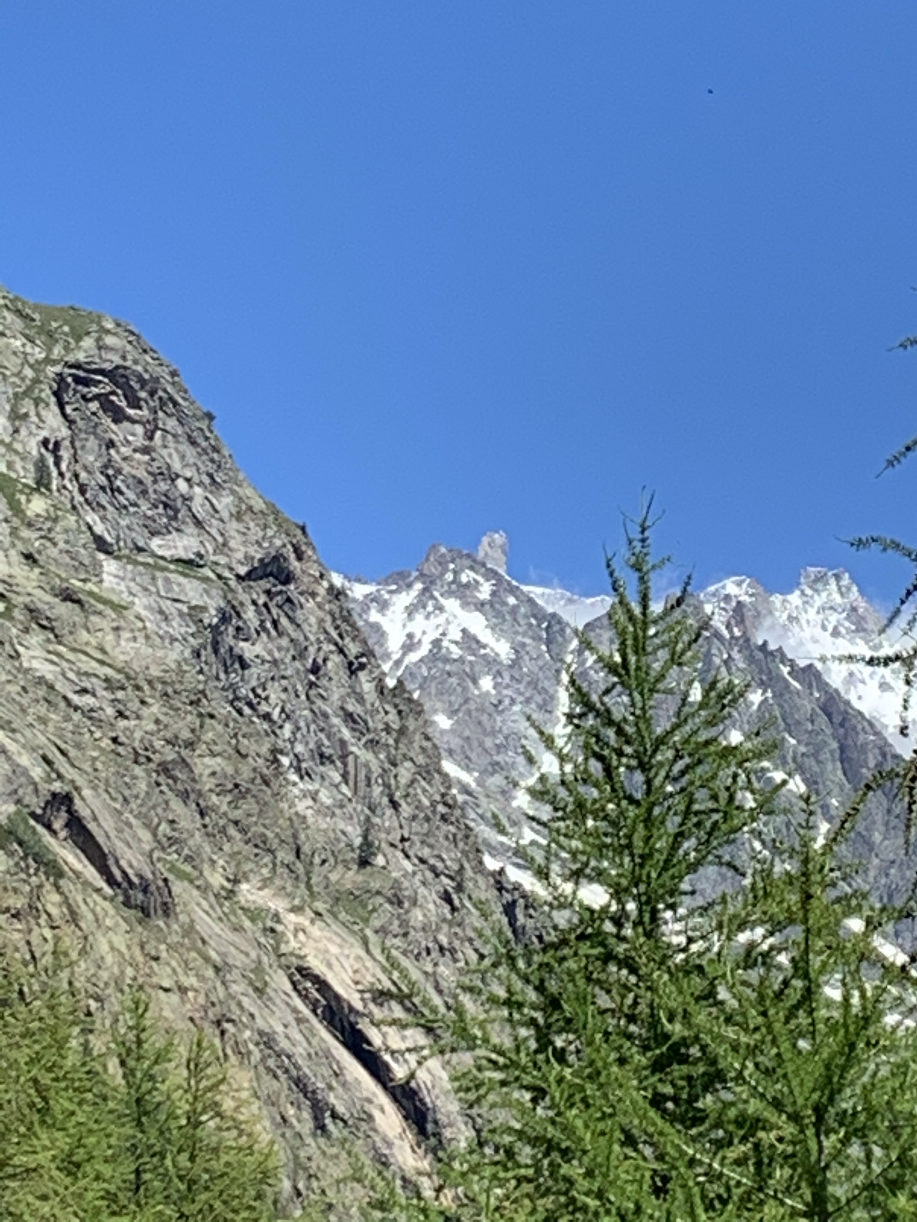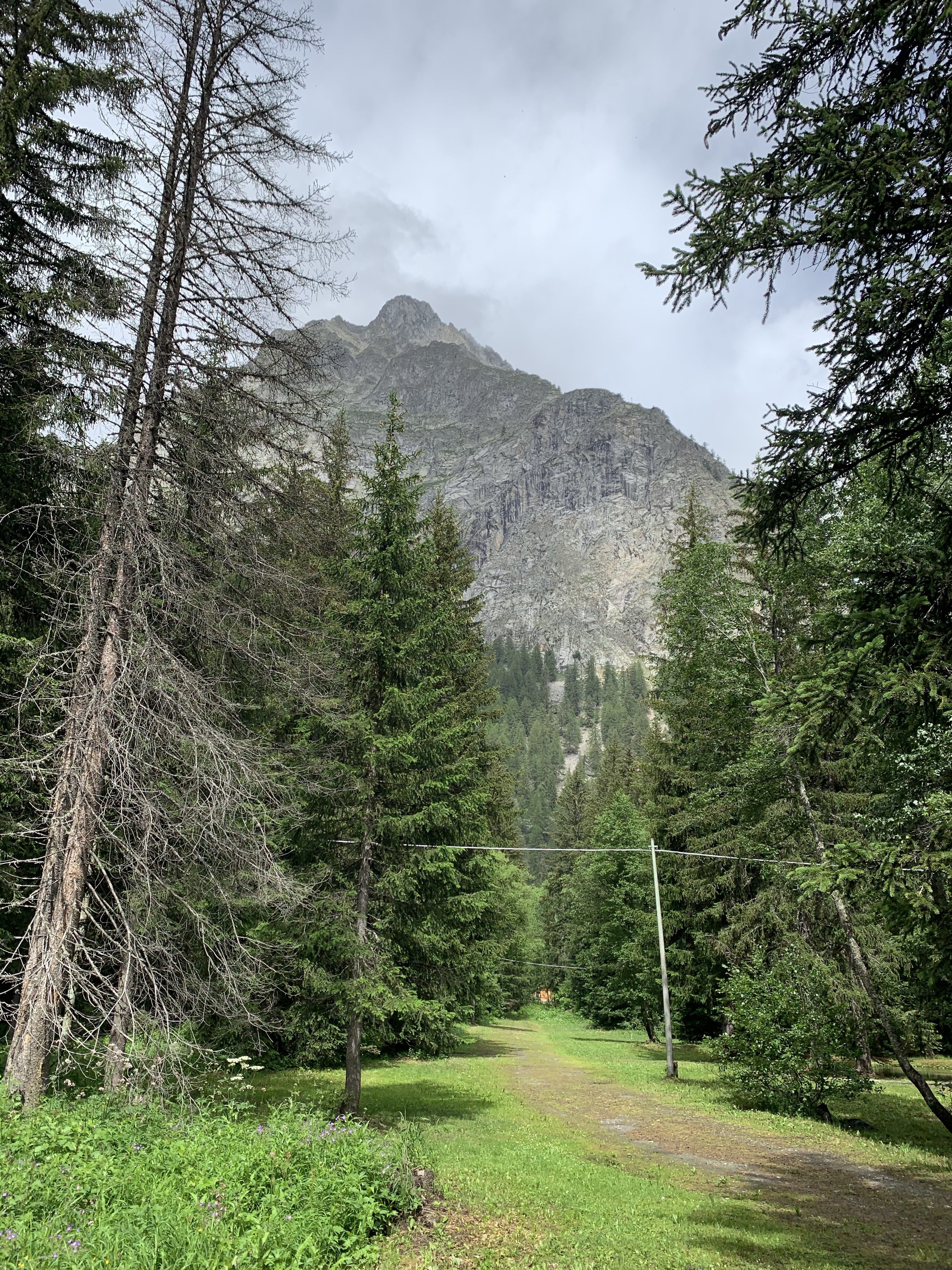 Volevo andare al Miage, ma non avevo voglia di prendere acqua per tutta la (orribile) strada. Così sono andata lo stesso in Val Veny e ho fatto una piacevole passeggiata, dal Purtud a Freney, a Lavisaille, giusto per fare un pezzetto in salita e ritorno , all’ombra dei pini.