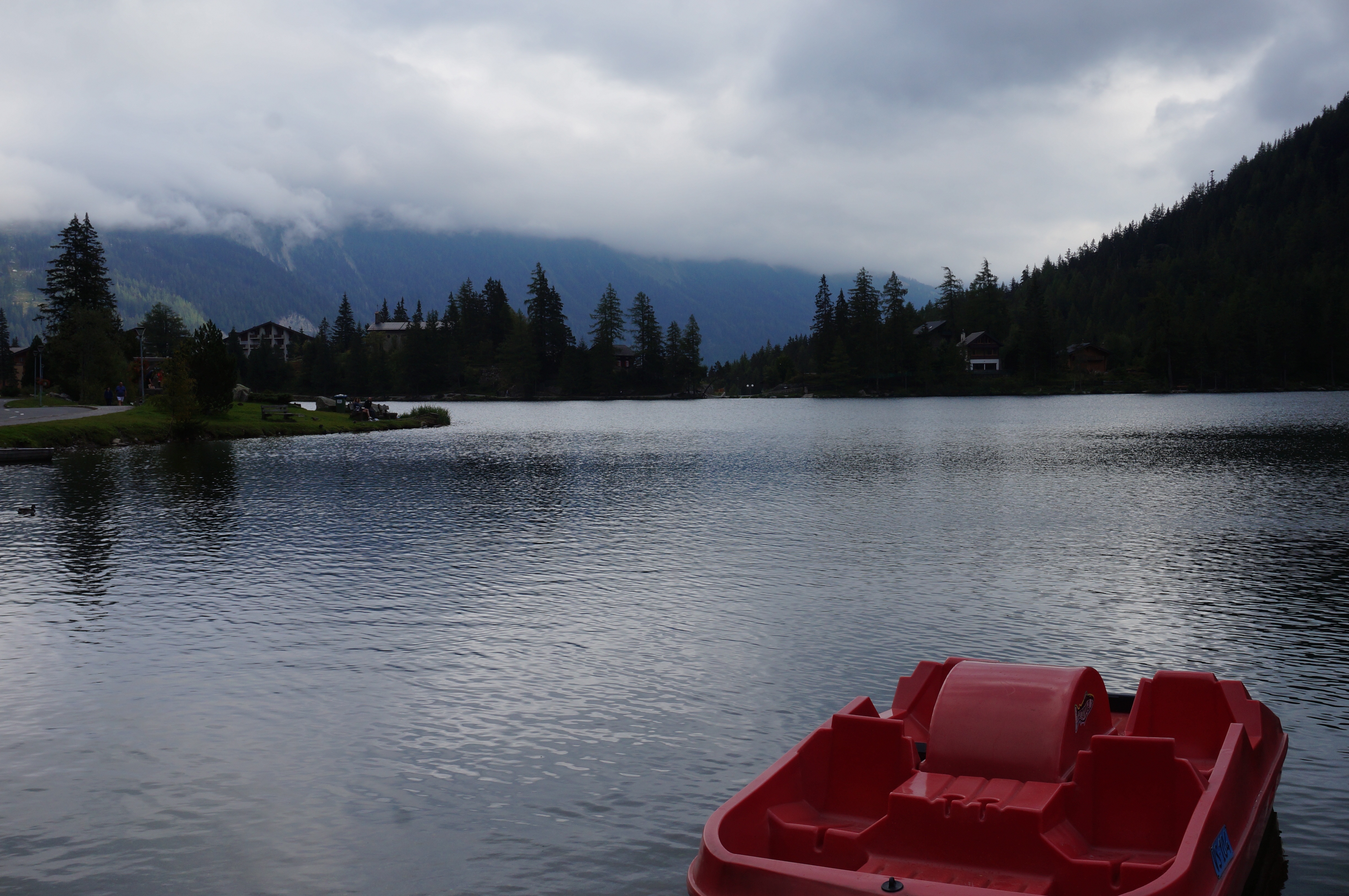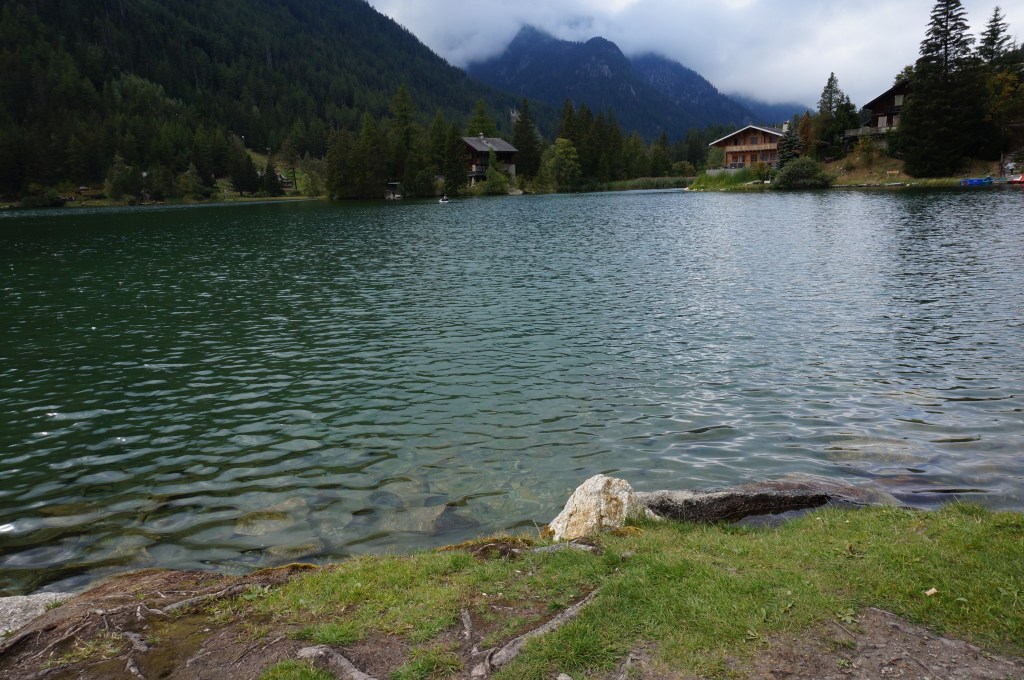L’altro lato è quello Svizzero, in cui io non mi sono mai avventurata. Qui c’è un luogo famoso…la Fenêtre d’Arpette, un intaglio roccioso al di sopra del col de Forclaz, da dove, mi dicono, si gode di un’unica vista sull’intero massiccio. Ho fatto un pezzo della strada, sino alla buvette, e il primo tratto di salita, un pomeriggio, quindi sapendo in partenza di non poter fare le due ore e mezza e rotti di strada. Varie persone cui ho chiesto lumi me l’hanno sconsigliata, dicendomi che è lunga e spaccagambe. Così sono andata a vedere una possibile alternativa a Champex, Val Ferret svizzera. Il posto è davvero rilassante, come tutti i laghi- e deve essere molto pescoso perché ho visto pescatori con tanto di tavolino, termos e ogni genere di conforto.