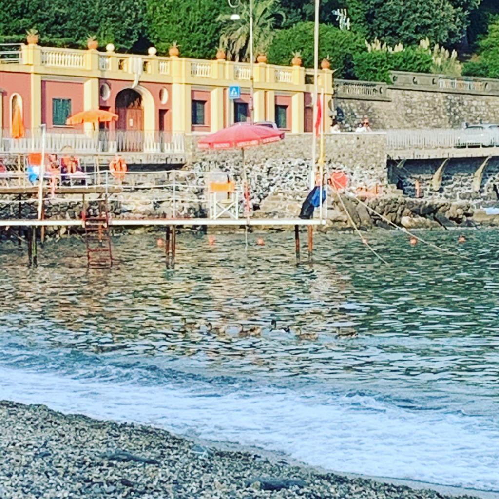 Comunque, passare un week end lungo al mare a settembre non è proprio una circostanza sfavorevole e ho lasciato che Lulù prenotasse un alloggio, la Cà d’Aristide, a San Michele di Pagana. Per chi conosce il Tigullio San Michele è nel mezzo: a esattamente venti minuti di strada a piedi puoi arrivare a Santa Margherita come a Rapallo. La Cà d’Aristide è a un minuto di strada dalla spiaggia, ha il cortile per parcheggiare dove stazionavano due gatti (Sono i gatti della casa, ci ha detto la vicina , e infatti avevano ciotole e pure la cuccia) e una bella terrazza. Io ho prospettato una serie di belle camminate per quando non saremmo state in spiaggia, e non ne abbiamo fatta nemmeno una, abbiamo camminato in lungo e in largo tra Rapallo , Santa e Chiavari, posti di cui ho un ricordo piacevolissimo dall’infanzia, in cui torno poco (ricordate che il basso Piemonte è rimasto immobilizzato dai lavori sull’A26 in modo tale che per far sessanta km ci volevano due ore), e che sono sempre felice di vedere, comunque siano ridotti – Rapallo, rispetto al passato, per dirla con la generalessa (una mia lontana parente Galanzino) che abitava dove c’è la fontana delle rane “è proprio giù”.