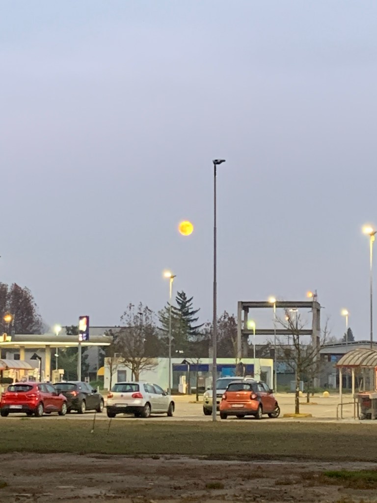 Oggi avevo intenzione di comperare qualche regalo di Natale, e sono passata in auto all’esterno della via principale, della vasca, dello struscio, così ci capiamo. Ho dato un’occhiata e ho lasciato perdere, e mi sono rifugiata, a comperare la lettiera dei gatti ma non i regali di Natale, in un anonimo supermercato di periferia, dove c’era molta meno gente (quello che vedete in foto è il parcheggio).