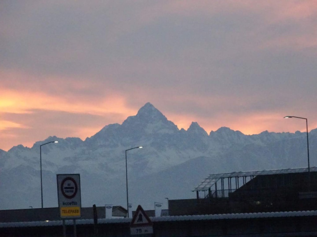Paradossalmente, il Genius loci, la Montagna delle montagne, per essere adeguatamente apprezzata deve essere osservata dalla periferia, al di là della tangenziale, dove, tradizionalmente, per i torinesi finisce il mondo: al di là, sunt leones o orsi, se si preferisce mantenere il criterio che Torino è un centro spostato un po’ in là e noi tutti gli altri, siamo periferia pur essendo più o meno alla stessa latitudine , con l’eccezione di Cuneo. Se non sapete cosa vuol dire essere periferia, non ci conoscete, nemmeno la Lombardia è così Milanocentrica, ed è tutto dire. La foto del Monviso che vedete, e che è di Alberto Giovenzana, è stata scattata lo scorso anno, prima che tutti ci chiudessimo più o meno in casa, dal casello autostradale di Carmagnola, dopo un pomeriggio di camminate con tempo assai uggioso, che si era concluso con una soste al mercato antiquario di Carmagnola, e lì, subito prima del ritorno, il Monviso, che era stato più o meno nascosto tutto il pomeriggio, si era palesato con un’improvvisa e sfacciata esibizione di rosa.