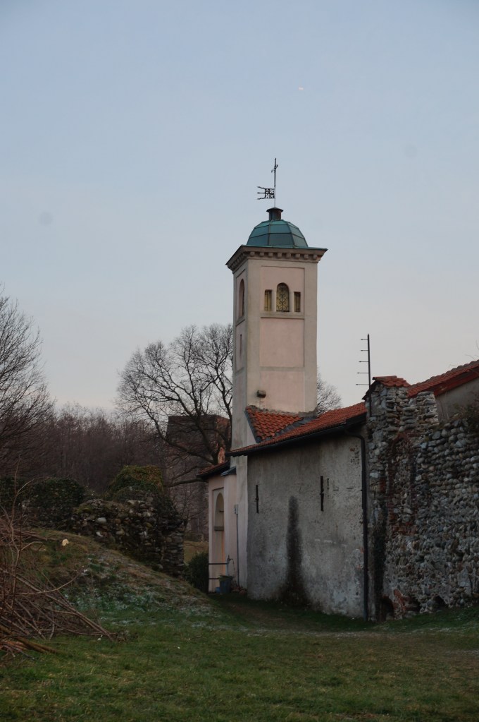 Guardando su Maps.me avevo visto che si poteva salire lasciando l’auto vicino alla parrocchia di Prato Sesia, e così ho fatto; la via principale interna lastricata non presentava indicazioni su come salire alla chiesa che è proprio al di sopra. Così ho preso la prima strada che andava in salita ( casomai). Infatti dopo un po’ c’era un’indicazione e la strada diventava un sentiero. una breve salita , una svolta a sinistra e il panorama si apriva subito sopra le casa e poi verso il monte Rosa. il sentiero, che fa già parte della riserva naturale del Monte Fenera, prosegue in falso piano sino a Romagnano, oppure si può aggirare il costone e riscendere su Prato Sesia, dietro la Parrocchiale. I castelli del Sopramonte erano orginariamente due; il torrione è ciò che rimane del Castello dei Torrielli, a pochi passi dalla chiesetta dedicata alla natività della Vergine, dopo la quale c’è un belvedere da cui si vede tutta la valle.