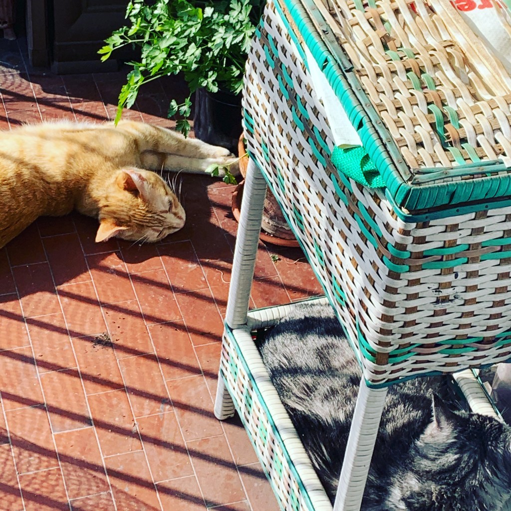 Un anno dopo, il mio terrazzo è sempre senza tende, i gatti pretendono già di passarci sopra i pomeriggi, e a Nizza e Mentone come qui c’è ancora il lockdown, solo che adesso qui si chiama zona arancione, che si differenzia da quella rossa perchè ci sono i negozi aperti, e lì si chiama zona blu di attenzione ( in quest’anno mi sono abbonata alle notizie mattutine di France- info, che è un po’ come l’Ansa, ma con meno refusi, quindi so chi sta peggio tra qui e là)