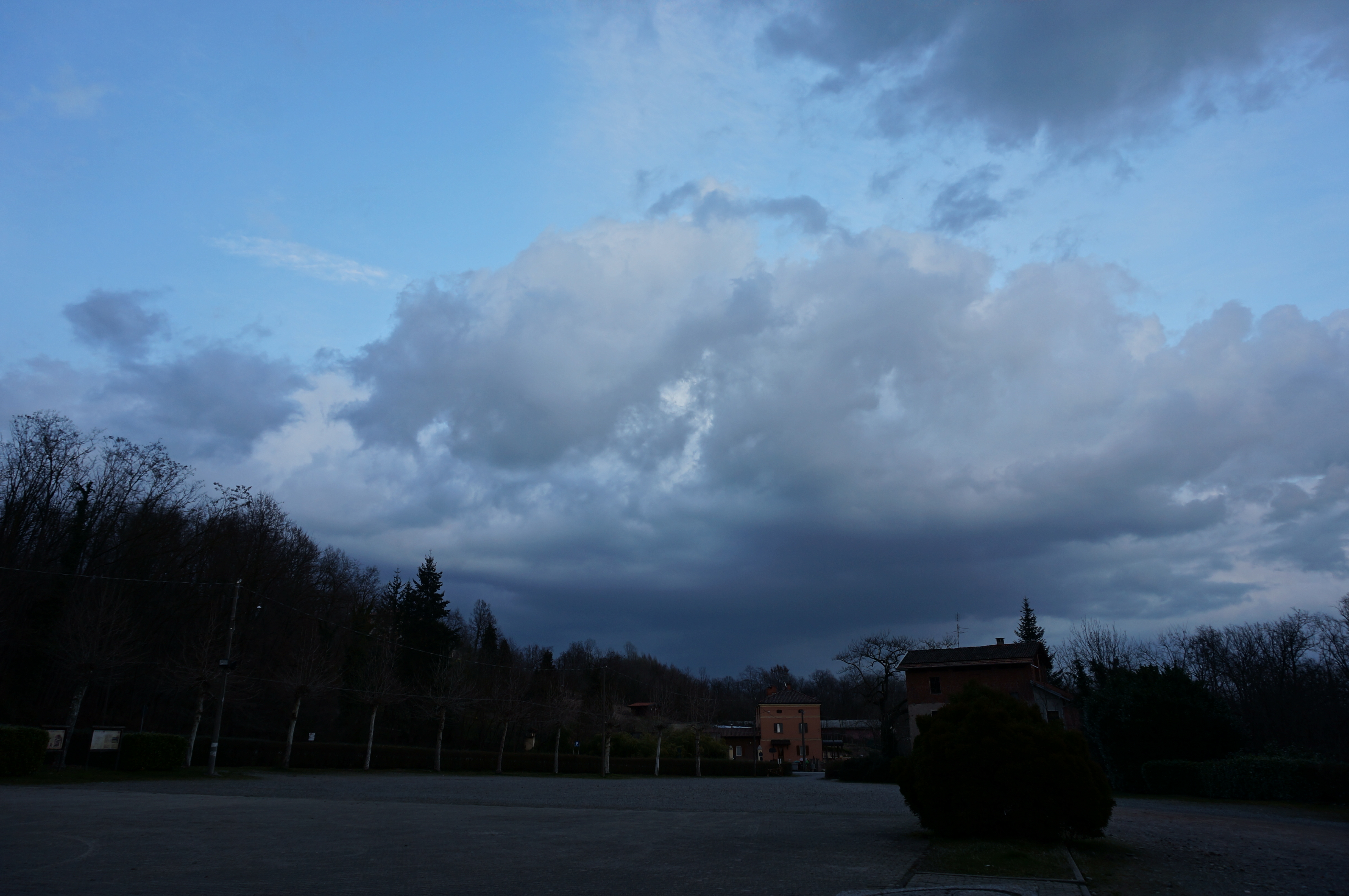 Invece la volta che sono andata in bassa Valsesia, dopo la passeggiata, ho pensato di fare un altro tentativo, e miracolosamente, ci sono arrivata senza praticamente fare niente di particolare. Ho usato il telefono, ho girato a destra un po’ all’improvviso, abbastanza all’improvviso da farmi strombazzare dietro, e poi niente, tutto dirittto. E alla fine ci sono arrivata facilmente. Ma siccome era già buio o quasi, prima di visistare la chiesa ho fatto un giro intorno alle vigne, verso Prato Sesia, sotto nuvoloni che non promettevano nulla di buono (un falso allarme, in ogni caso).