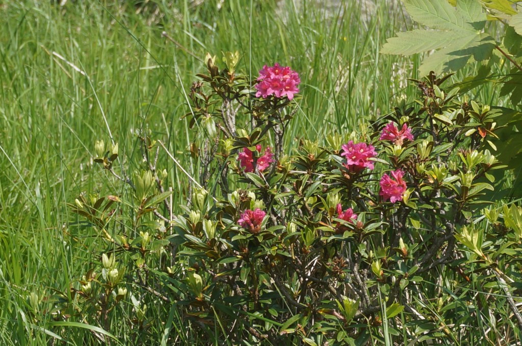 Dato che oggi è stato il primo giorno veramente estivo (cioè di caldazzo, da queste parti), ho cercato di emigrare in altri lidi, salvo scoprire “dove va signora ?” “A Chianocco” ” ma deve andare a destra o sinistra (in effetti, dritto)? da Susa arriva la manifestazione No tav” “Ah grazie, torno verso Torino” Siccome il dialogo si è svolto ad un posto di blocco della polizia, e il poliziotto, per altro gentilissimo, aveva l’aspetto di quelli che tempo trenta secondi si mettono in assetto antisommossa, ho evitato di discutere sia con lui sia con i manifestanti no tav. Andando verso Borgone ho incontrato un bel po’ di gente che si sistemava per aspettare il corteo. Ho ideee molto definite su un sacco di cose, ma la questione NoTav mi ha sempre lasciato molto combattuta perché le ragioni della gente della valle sono assolutamente condivisibili, ma allo stesso tempo, togliere un po’ di tir dalle strade e di cappa caliginosa da Torino e dintorni non è male…Tra l’altro, l’edizione torinese del quotidiano sabaudo dava notiza della cosa, ma non è che leggo tutte le edizioni locali tutti i giorni (in realtà posso, ho un abbonamento digitale, in realtà sarà meglio, ogni volta che abbandono il mondo mandrognistano per uscira dalla provincia, non si sa mai). In ogni caso sono andata poi al colle del Lys, sperando di trovare un po’di fresco, e ho fatto una passeggiata (notate le parole) fotografando un po’ di rigogliosi rododendri.