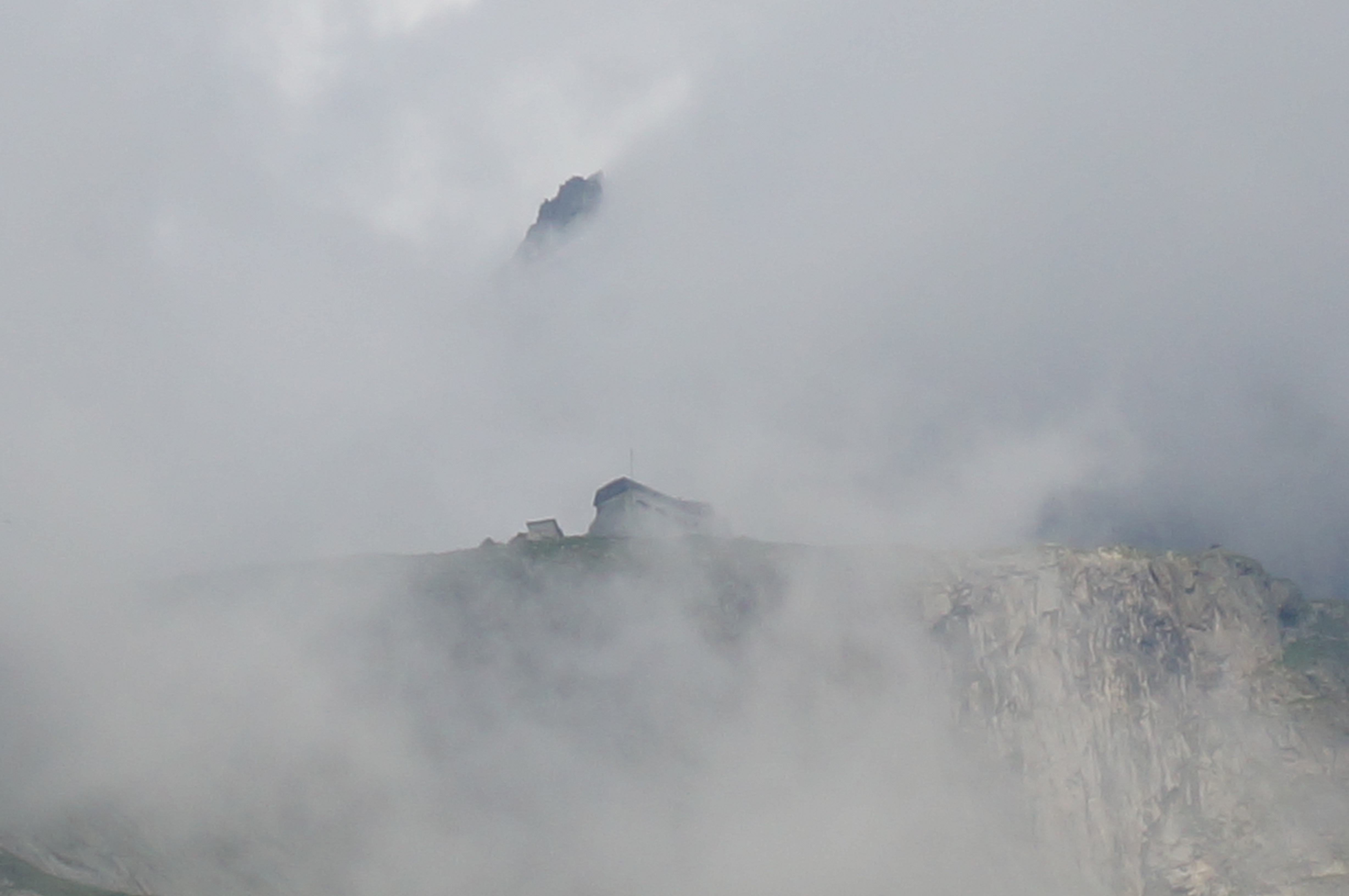 Quest’anno, sempre in un giorno di tempo incerto, sono tornata in Val Veny con la cuginanza al completo e l’itinerario dei casolari di Freney da Fior di Roccia al Purtud e ritorno ha un complemento che non lo scorso anno non avevo notato/ non sapevo che è stato realizzato un sentiero a lato della Dora, che permette di completare l’anello senza dover passare sulla provinciale in mezzo alle auto. Oltretutto ci sono panchine nuove da una parte e dall’altra e se si vuole si può anche prendere il sole. Una favola, sei km per tutto il giro, percorsi abbastanza a passo di carica. Fermandoci, io e Giamma, giusto il tempo per vedere e fotografare il Monzino che giocava a nascondino con le nuvole.