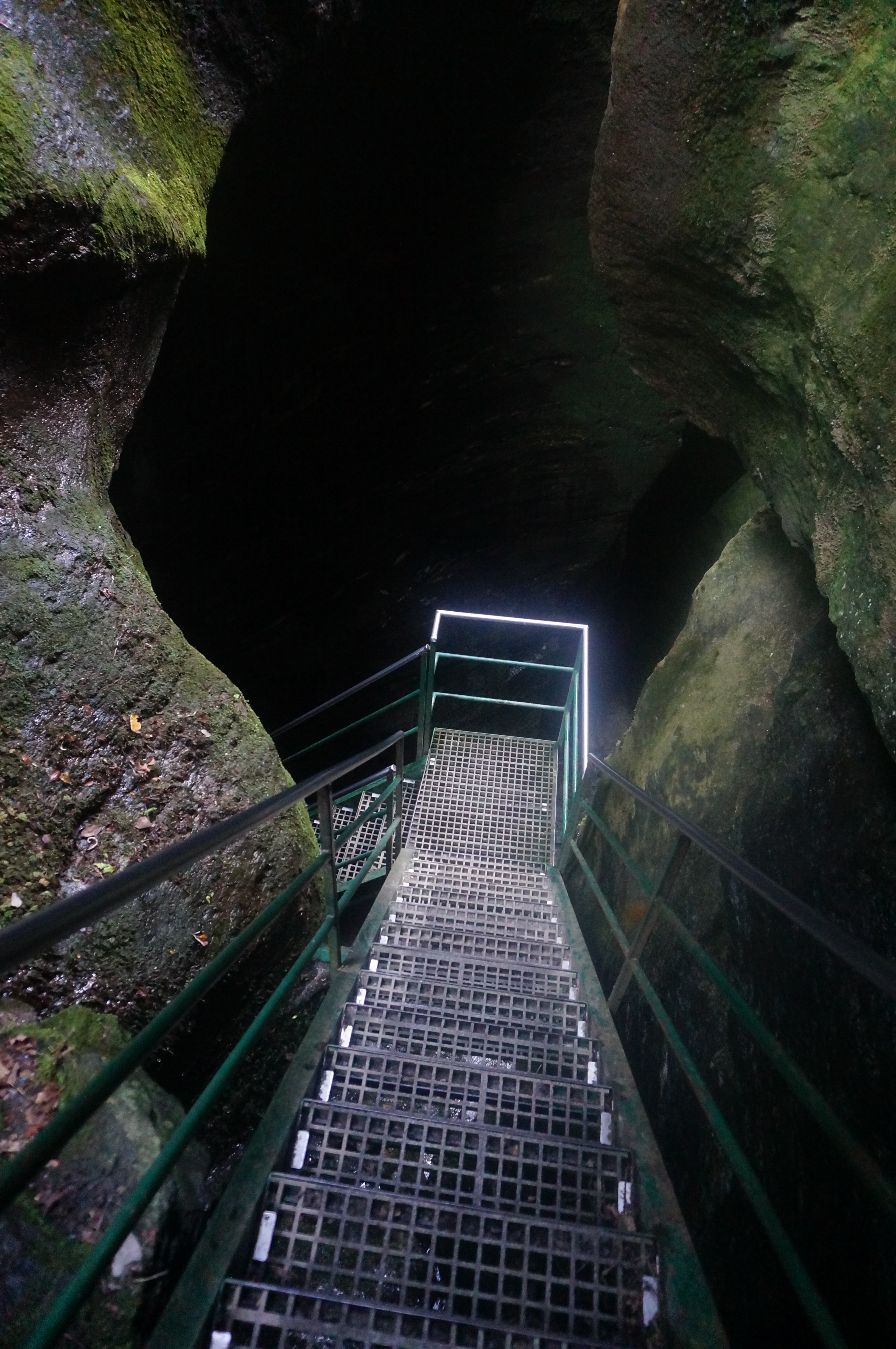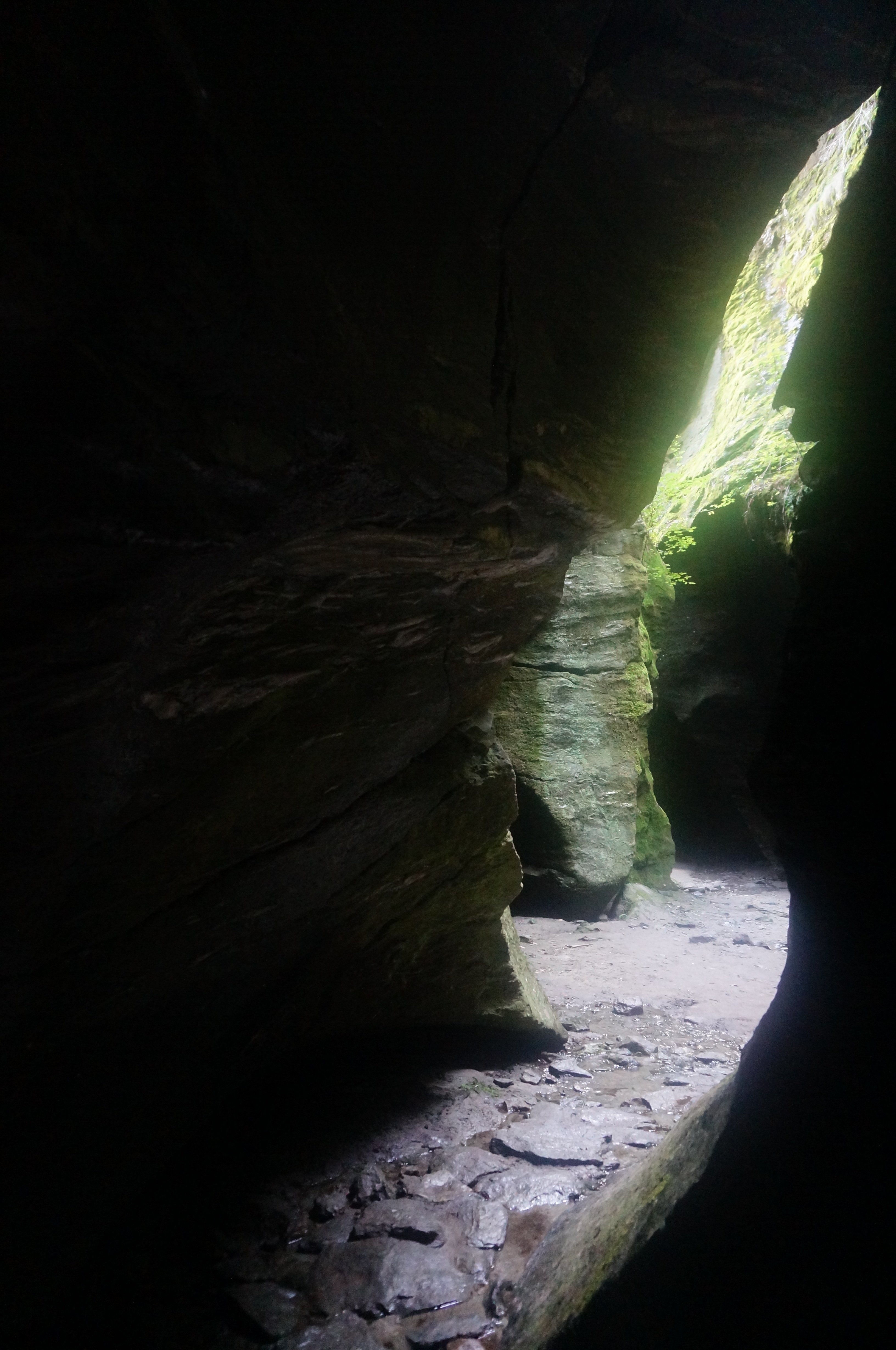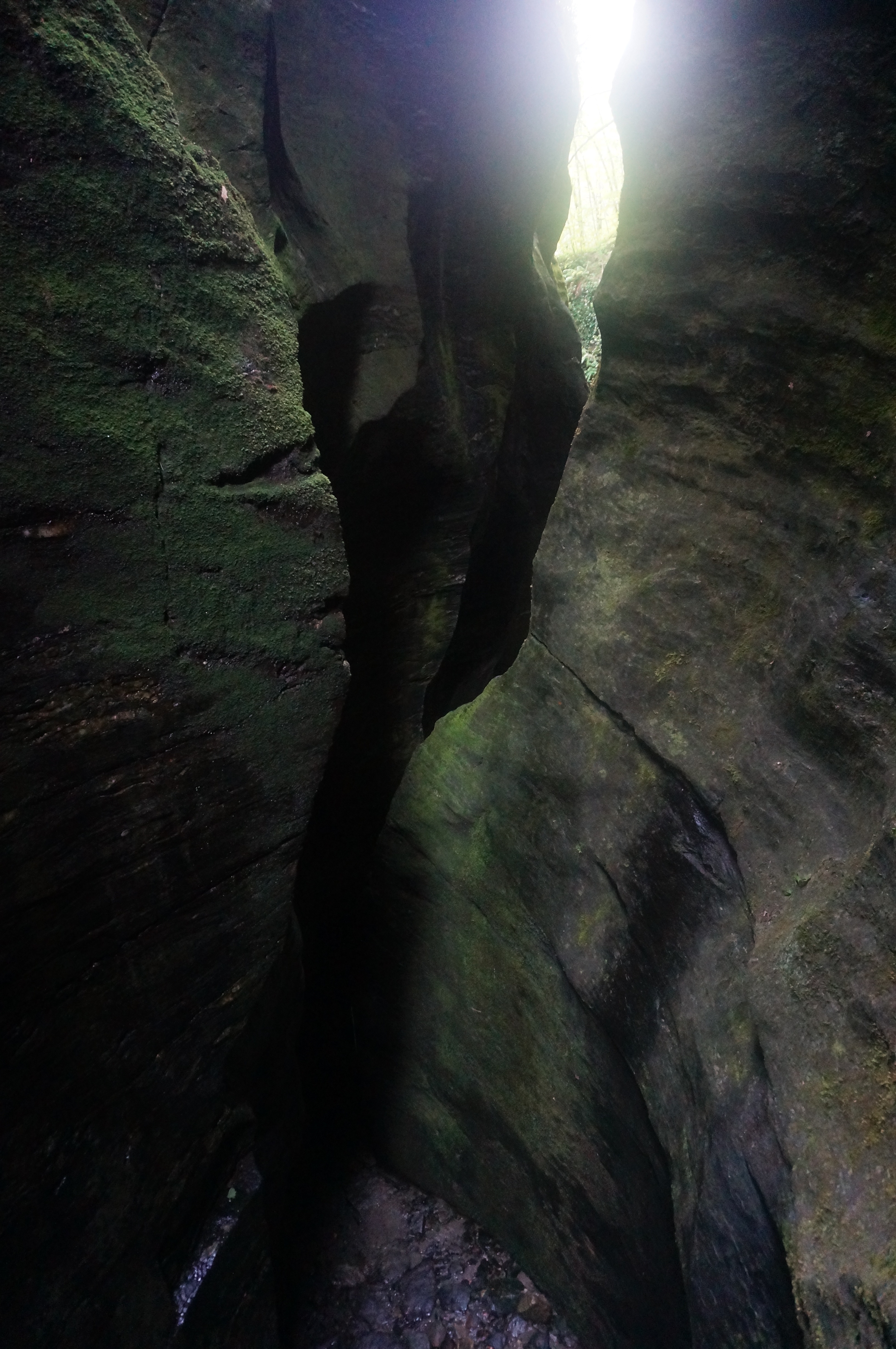 Allora, devo proprio fare un mea culpa pubblico: ho toppato. Quando sono andata agli Orridi di Uriezzo, questa primavera, non li ho, in effetti, visti affatto. La descrizione dell’itinerario che ho dato a giugno (cfr: https://alpslover.com/2021/06/26/in-cerca-di-portaluppi-ii-deviazione-gli-orridi-di-uriezzo/) è perfettamente corretta, peccato che degli orridi io abbia visto soltanto la prima “camera” dopo la scala metallica. Mentre Luisa e Tobia rimanevano in basso e io mi aggiravo nella camera per fotografare, sentivo le voci di due signori che ci avevano sorpassato e ci avevano anche chiesto indicazioni. Li avevo visti salire, e poi erano scomparsi. Così ho scoperto un passaggio, molto stretto, e perfettamente buio che conduceva ad un’altra piccola caverna e mediante un’altra scala metallica molto più altra portava ad un ulteriore canyon dove la luce disegnava strani contorni.