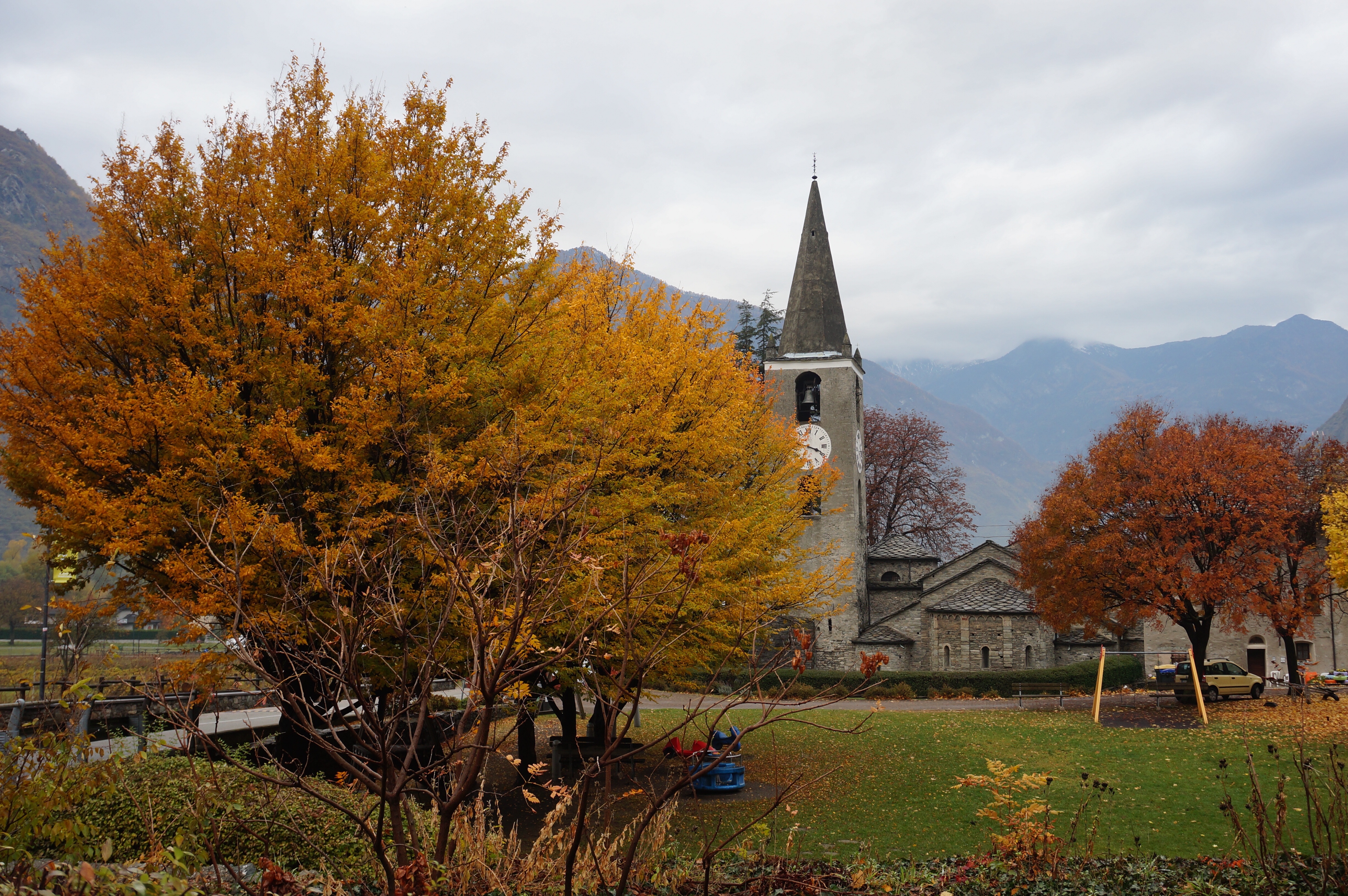 Un bel tragitto attraversa Arnad, dalla parrocchiale verso il villaggio, e risale alla casaforte e poi al castello dei Challant. È un percorso quasi completamente su asfalto, ma consente di ammirare case ancora fiorite ( ditelo alle rose che l’estate è finita), gatti che prendono il fresco e soprattutto alberi meravigliosamente rossi.
