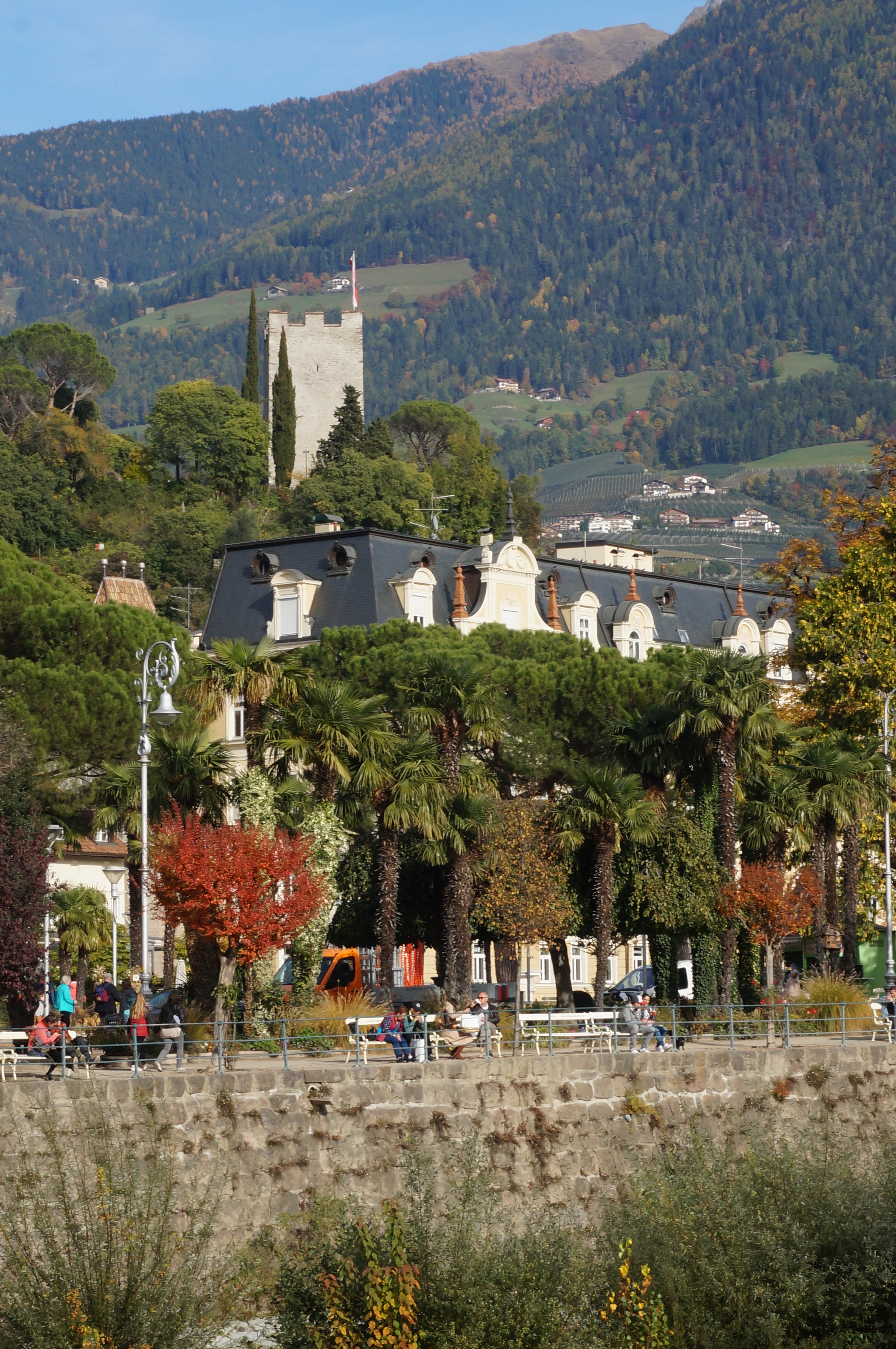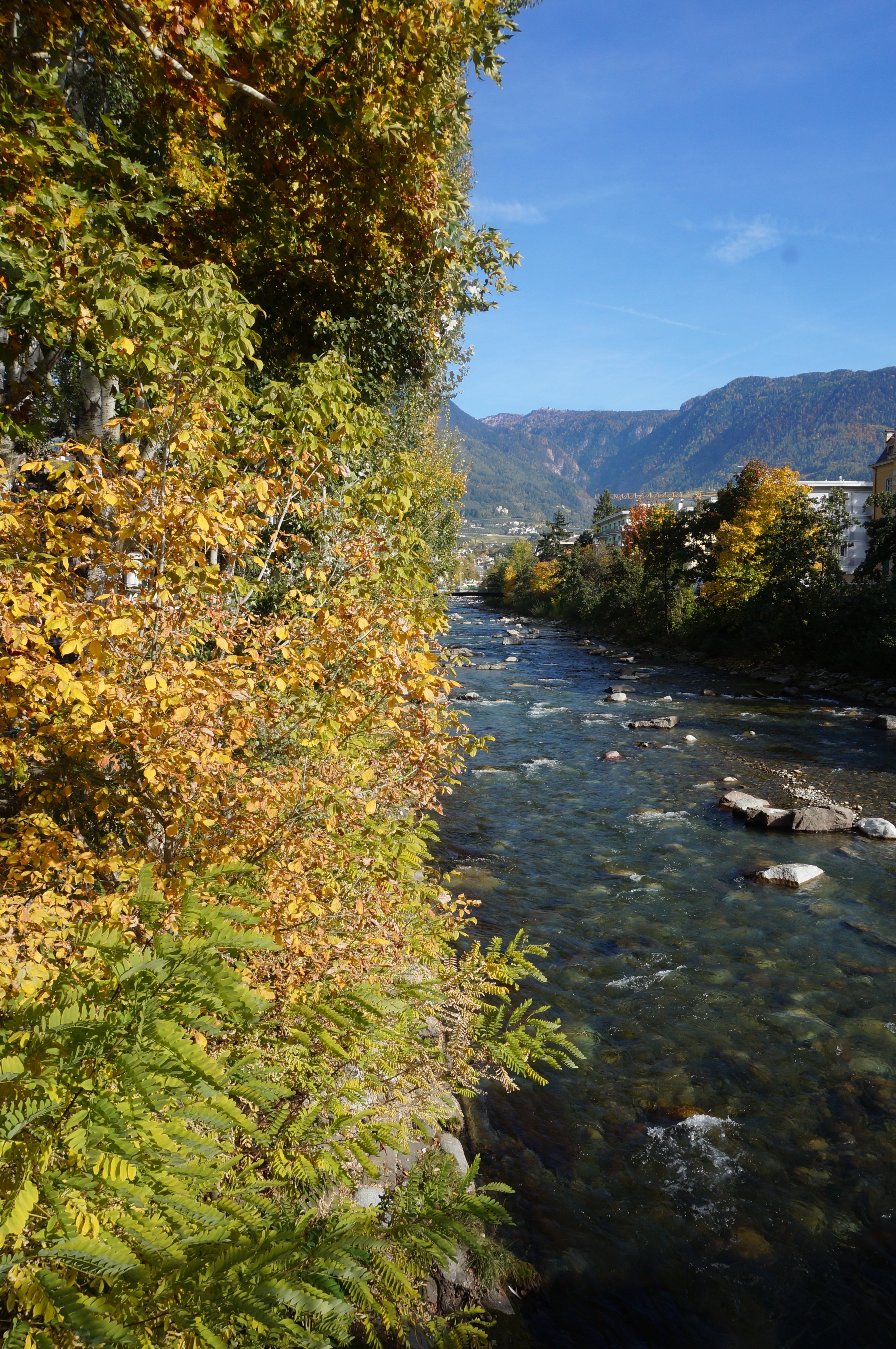 Sono andata a Merano più di una volta, e lo ammetto, mi sono limitata a passeggiare lungo il fiume e a girellare nella parte vecchia della città, e pranzare lungo il fiume (e ho scoperto che il posto in cui abbiamo pranzato la prima volta io e Francesco è ancora lì al suo posto , cosa di questi tempi non scontata). Il mio punto di riferimento era la chiesa Luterana, così tranquilla e immersa negli alberi, ora già ricchi di splendide sfumature.