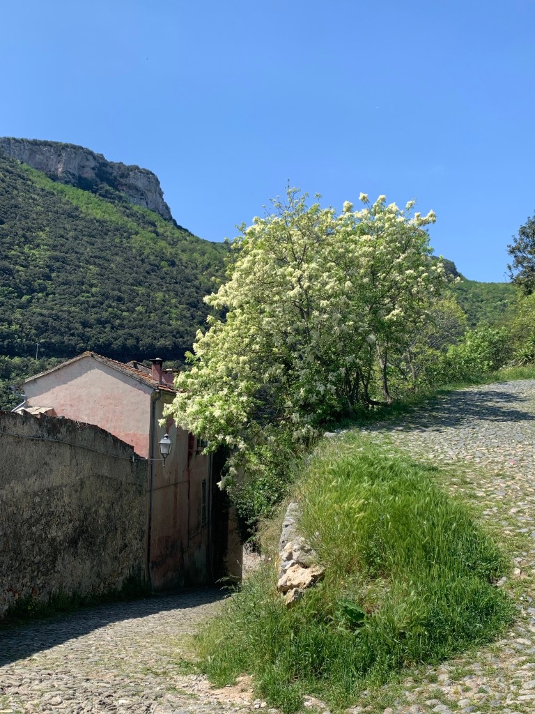 Nelle foto si vede l’unico tentativo escursionistico della nostra due giorni, perché Luisa cammina ma non in salita per via della sua sciatichina (che rottura i dolori). Si tratta del primo tratto dell ‘ anello di Perti, che coincide con la parte meglio conservata della Strada della Regina, costruita nella seconda metà del Seicento per Margherita di Spagna che andava a sposare l’imperatore d’Austria, e sbarcò a Finale, come ricorda anche l’arco di Trionfo che a Finalmarina fu costruito per l’occasione e che ricorda molto quello di Innsbruck, che è di qualche anno successivo ; sospetto che gli architetti del periodo avessero l’arco per matrimonio standard, cambiavi un po’ di decorazioni a seconda dei simboli araldici del regnante di turno, e hop, veniva su in due settimane come gli orrendi palazzoni degli anni Sessanta, e vi assicuro che in zona ci sono degli esempi di una bruttezza raccapricciante.