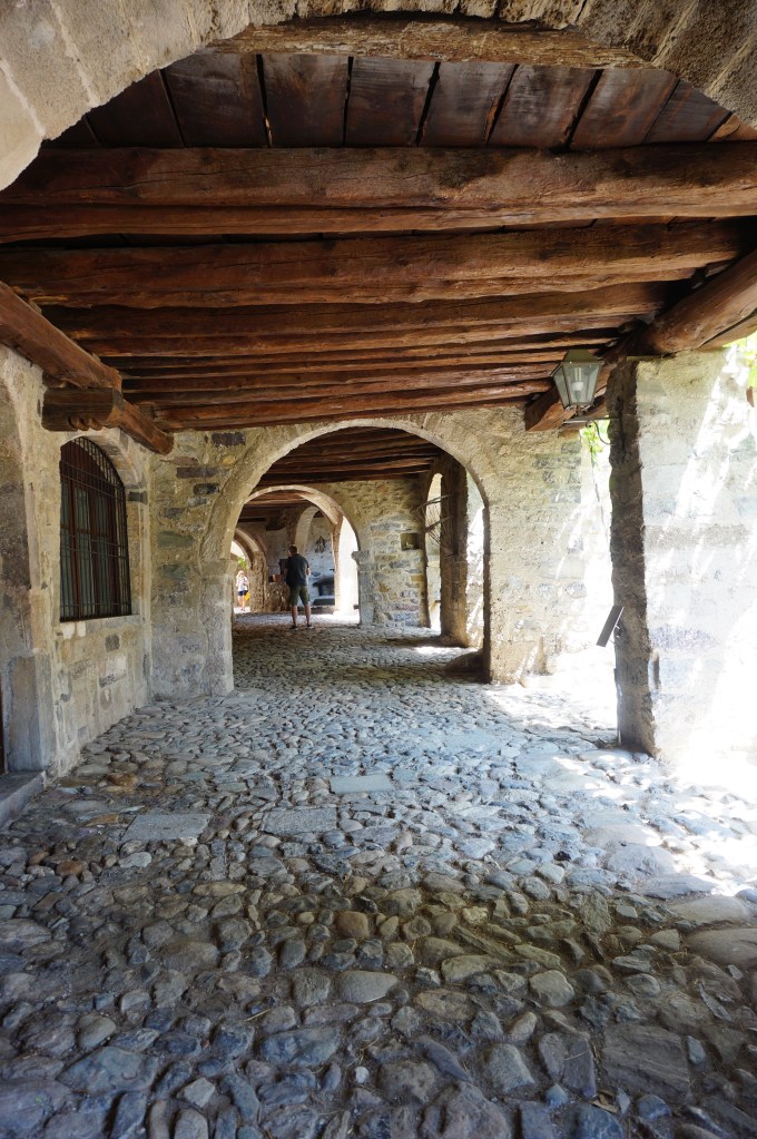 E noi abbiamo prontamente obbedito, il giorno dopo, andando dalla frazione Oneta dove si trova la Taverna a piedi a Cornello dei Tasso (Tasso quello della Gerusalemme Liberata, non il simpatico animaletto), che è sicuramente l’escursione breve (un’ora un’ora e mezza a.r.) della zona, ed è facile capire perché: è alla portata di tutti, su una bella mulattiera largamente lastricata, una via commerciale esistente sin dal medioevo, è in larga parte in ombra nel bosco, quindi relativamente al fresco anche in periodo di caldo torrido, e quando ci siamo andate lo era, si trovano posti gastronomicamente interessanti all’inizio e alla fine, e sia Oneta, sia Cordello sono deliziosi Borghi antichi, con notevoli palazzi, chiese ed affreschi che valgono una visita (la chiesa di Cordello custodisce tracce di affreschi del ‘400 molto interessanti)