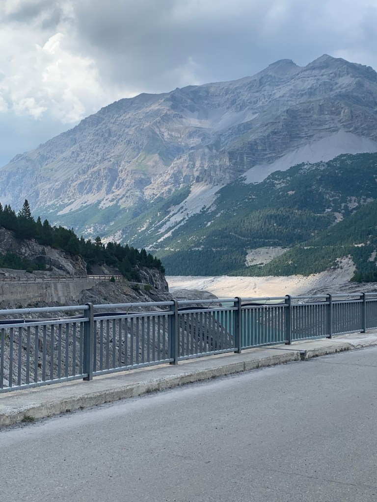 Noi siamo andate dalla palazzina AeM sino alla cappella e un po’ oltre e abbiamo potuto comunque godere una splendida vista sul bacino artificiale, nato nel 1931 allagando prati pascoli e alpeggi. Sono ancora presenti ì villaggio degli operai – uno sembrava occupato da un oratorio . Anche questo è un sistema integrato come quello della val Formazza, ampliato negli anni Trenta