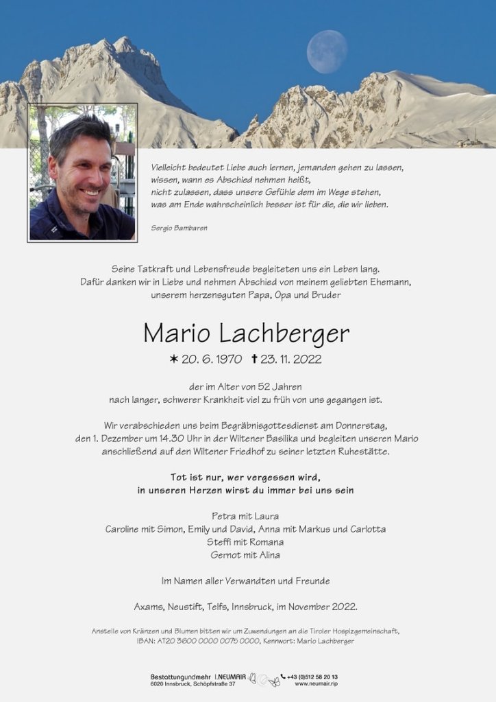 So che questo è un sito principalmente (ma non soltanto) leggero – umoristico credo sia una parola grossa. Mi corre però la necessità di ricordare qualcuno che non c’è più, e che se n’è andato davvero troppo presto, a 52 anni: il nostro amico Mario di Innsbruck. Nostro perché era amico di mio marito e mio.