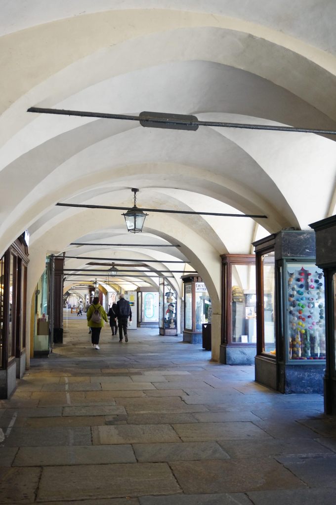 E poi, come in molte città di frontiera, in questo caso ligure piemontese, ci sono i portici, in via Roma ma non solo: un invito alla passeggiata e al flaner ( e flaneggiando di qua e di là si fanno km)