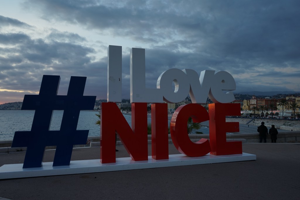 Ho avuto persino il tempo di farmi un selfie davanti all’insegna I❤️Nice come una turista qualsiasi (e no il selfie è troppo orrendo perché lo possa pubblicare qui o altrove – basti pensare che il ritratto migliore che ho è anche quello in cui ho indosso una vecchia t-shirt grigia a righini, ma tant’è, spero che si guardi la mia faccia è non la t shirt)