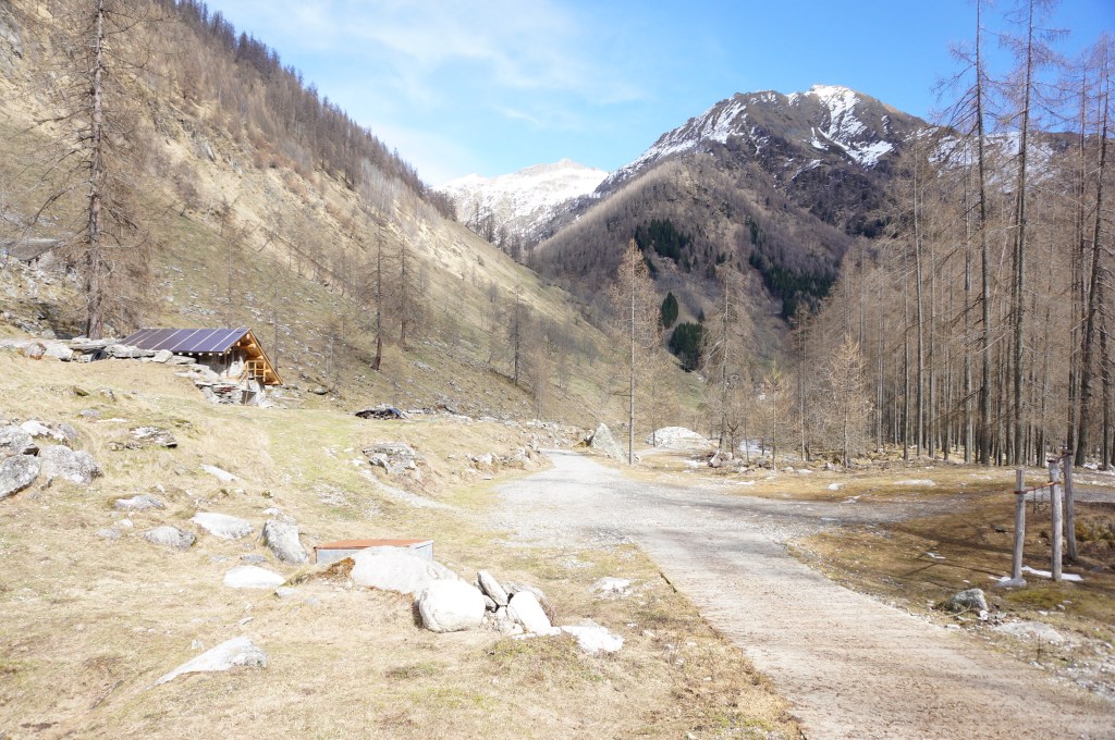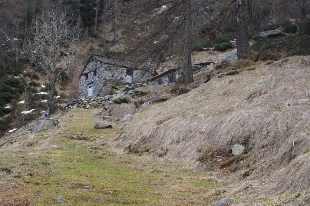 Sale blandamente sino all’Alpe Chignola e poi fa sul serio. La neve si presenta all’incirca tra i 1750 e i 1800 metri, la traccia era abbastanza visibile, ma avendo un solo paio di bastoncini, che avevo portato pro anatra zoppa, non ci siamo azzardate. Controllate attentamente il bollettino valanghe, perché sotto il risalto dopo l’alpe Chignola ci siamo prese una scarica di ghiaccio, e non siamo state velocissime a spostarci, ma per fortuna eravamo fuori traiettoria. Magari è stato un gruppo di caprioli a provocarla, perché in tutto il giorno non abbiamo visto anima viva se non a Carcoforo, ma appunto.