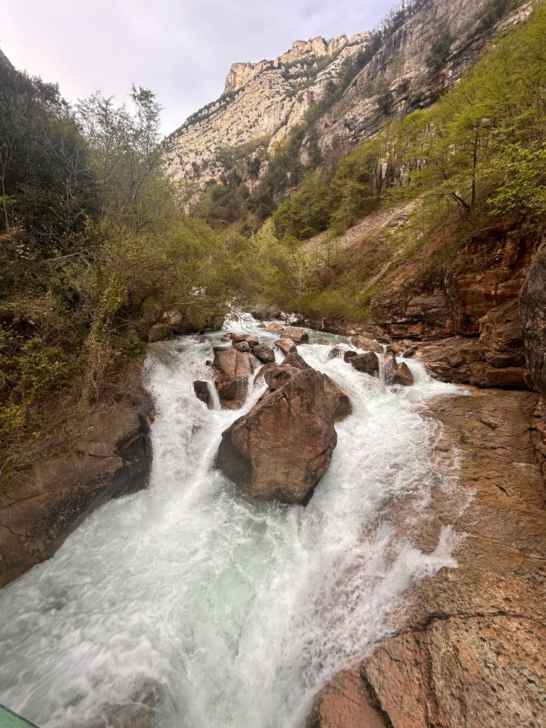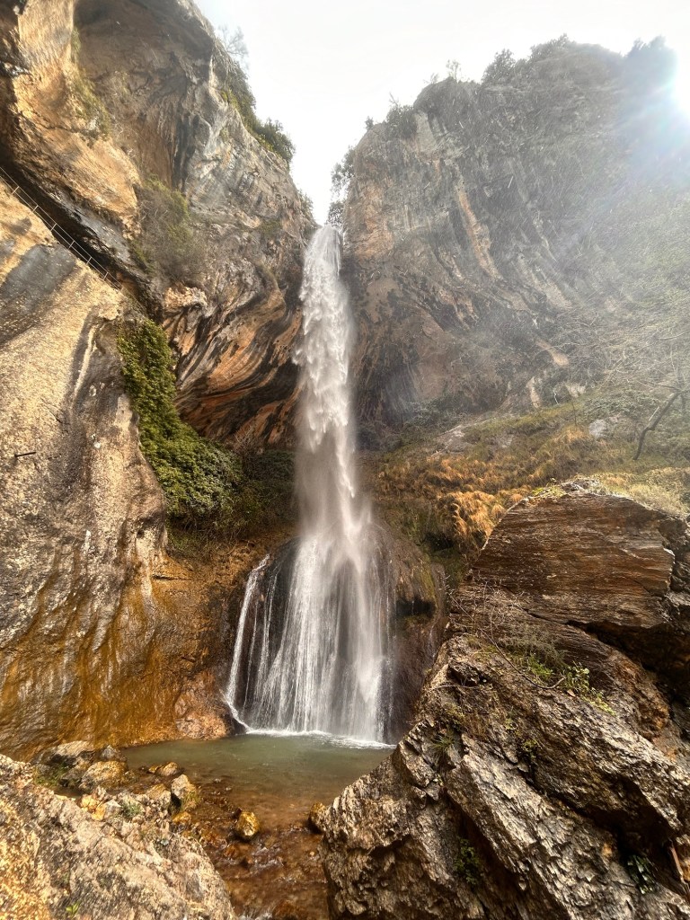 Non ci sono sentieri che percorrano le gole, perchè sono tutti piuttosto pericolosi. Anche sopra la cascata a metà della gola, dove è evidente la presenza di scale e sentieri belvedere, hanno chiuso tutto. Così Amica Giovane non ha avuto la tentazione di arrampicarsi.