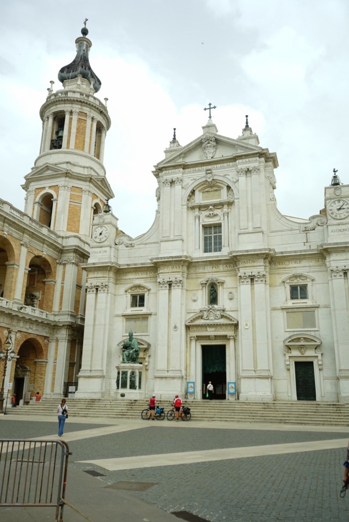 A Loreto non c’è molto da vedere se non la basilica, che comunque architettonicamente è molto bella (ci hanno lavorato Vanvitelli e molti altri nomi importanti). Sono stata in luoghi spiritualmente molto potenti, e Loreto non è uno di essi: mi è sembrato un baraccone della fede (è una delle ragioni per cui non ho mai messo piede a Lourdes). In più ho questionato con un laico che ha trovato la mia maglietta troppo scollata. Non potendo mandarlo a quel paese, data la santità del luogo, mi sono spostata più in là e ho continuato la visita anche all’interno della Casa della Vergine (il cui trasferimento da parte dei crociati a Loreto è di per sè un’impresa decisamente straordinaria – no non sono stati gli angeli come vuole la leggenda, ma secondo me la versione “umana” è una storia anche migliore, se pensate che cosa significava nel Medioevo smantellare un edificio, trasportarlo via mare e ricrearlo altrove). In ogni caso, potete entrare nella basilica in shorts, ma non in canottiera, e non scherzo: però ho portato un oggetto al frate che li benedice, un regalo per Lulù che ama molto quel luogo, e il frate non ha fatto una piega, anzi abbiamo parlato almeno per me piacevolmente. Come diceva Manzoni, omnia munda mundis. (Lulù poi mi ha confermato che i frati sono molto più aperti e disponibili all’ascolto dei laici bacchettoni).