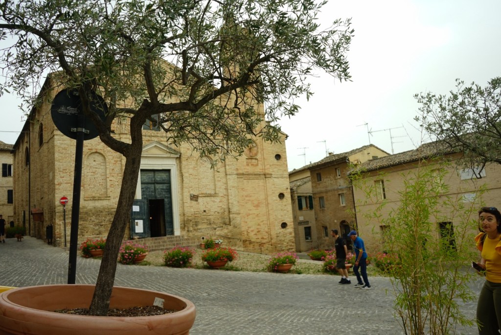 A Loreto faceva molto caldo, a Recanati pure di più, e la pianura alla base delle due alture (Loreto e Recanati sono praticamente sulla stessa linea di colline) era immersa nella prima afa. Abbiamo scartato il colle dell’infinito e siamo andate a caccia dei luoghi Leopardiani. Casa Leopardi è in effetti molto bella, e ci ha confermato che essere infelici in un palazzo con i soffitti affrescati non è la stessa cosa che esserlo in 4 in sessanta metri quadri, sorry Giacomo, così è. Tra l’altro, nell’ingresso laterale potete farvi un selfie con Leopardi, cosa che abbiamo prontamente fatto. Se a Leopardi Recanati che è un borgo assai grazioso stava stretto, forse doveva venire in Mandrognistan. In ogni caso è una cittadina medievale molto piacevole e ricca, ma probabilmente senza Leopardi non ci andrebbe nessuno. A Recanati c’è una delle due librerie che che ho incontrato in tutto il viaggio (l’altra l’ho vista a Narni, a Spoleto mi rifiuto di credere che non ci siano).