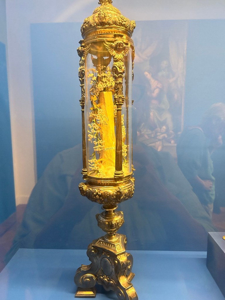 Dai ritratti realizzati in pietre dure – la mostra ha come partner l’Opificio delle pietre dure di Firenze, ai reliquiari ( quella in foto appartiene a San Baudolino), ad alcuni quadri come questa meravigliosa Madonna del Moncalvo in cui sembra che il bambino esca fuori dalla sua tasca.