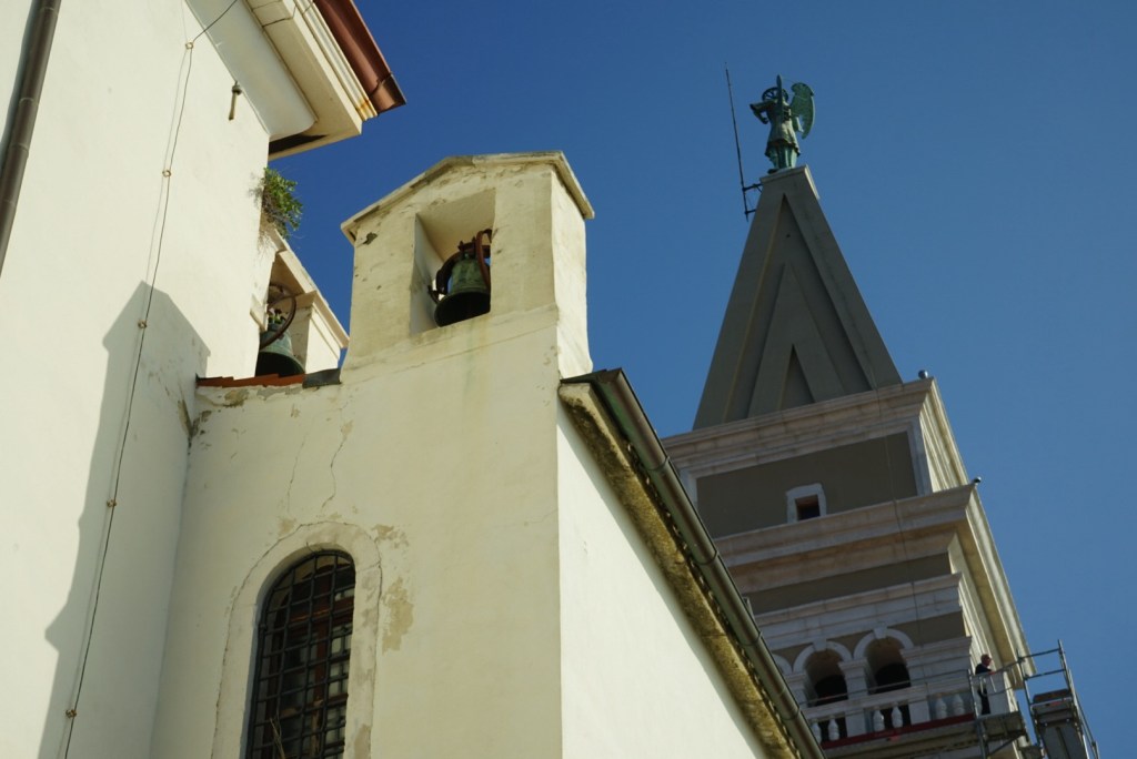 Sino a poco tempo prima avevo visto solo Capodistria, che è un piacevole borgo veneziano. Ci siamo passate, ma la nostra meta era Izola (Isola), un altro piacevole borgo di stradine e viuzze, una chiesa dedicata a San Giorgio con – guess what- un campanile veneziano. La piazza centrale è dedicata a Tartini (pensate a quanta gente è nata in Istria, da Mario Andretti- questo è un omaggio al Grande Longo che è un fan) e ha una forma elicoidale. Davanti il porticciolo turistico, con le barche dei pescatori.