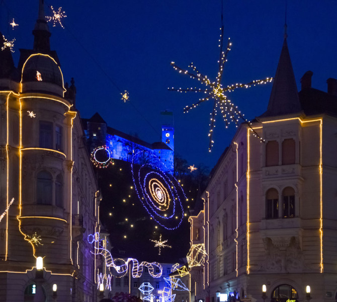Andando all’ estero, i miei informatori suggeriscono Bruxelles, dove il mercato si tiene nella Grand Place, e Zagabria in Croazia, da sempre una meta dello shopping natalizio. E poi la Slovenia. Noi siamo andate a Ljubliana, che è una graziosissima città, dove chiese e monumenti si concentrano nella zona del fiume Liublianica, sotto al castello, dove c’è anche la navigazione fluviale, e pure la movida. Nella stessa zona, come tuttti gli anni, ci sono particolari installazioni luminose (un po’ come il festival che si tiene a Bressanone). C’è anche un presepe installazione di paglia, e tutta la città è addobbata. Più che le bancarelle, in tutta la Slovenia, anche sulla costa a Pirano e Capodistria, dove samo stati noi, ci sono le città addobbate di luci. (immagine dal sito turistico della città)
