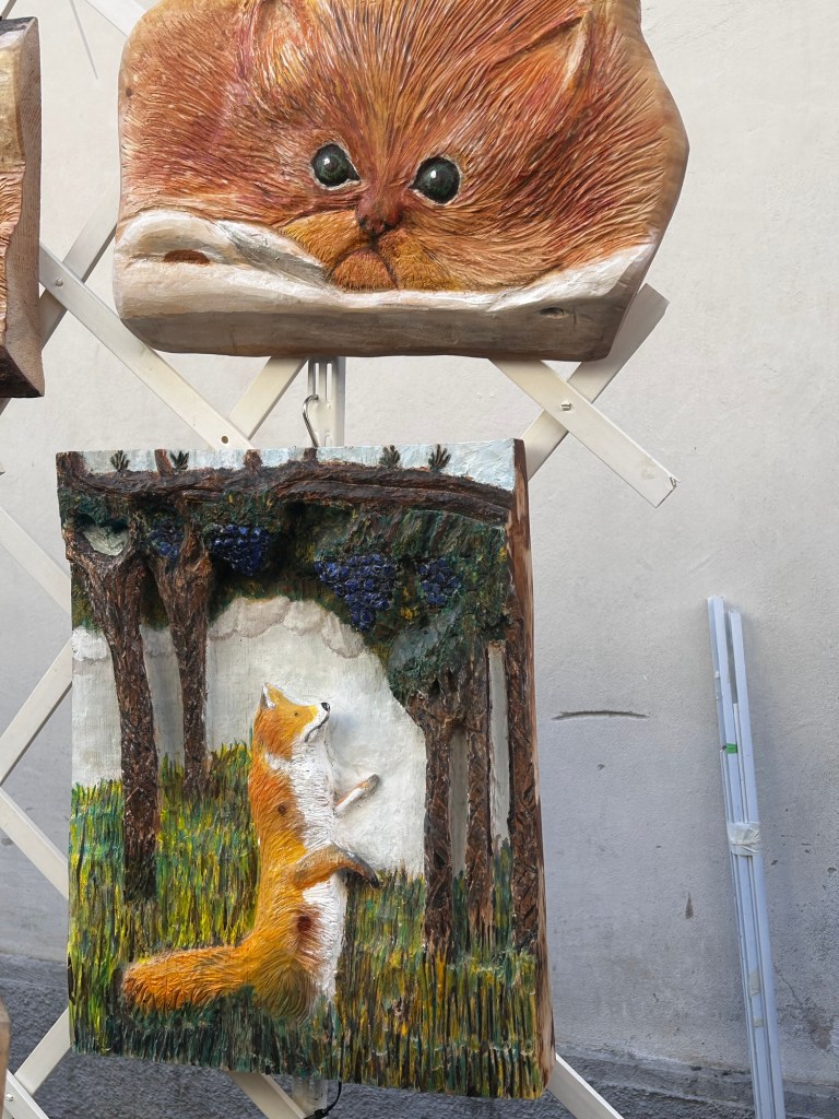 La massa, e io che sono sensibile alla massa ho già dato forfeit (e per fortuna ho detto alla mia amica di andarsene per i fatti suoi e ci vediamo davanti alla trifolette, prima di tornarcene a casa di dio dove abbiamo lasciato l’auto. I parcheggi sono per fortuna gratuiti). L’anno prossimo sarà a ridosso del week end e dovrò inventarmi una scusa . Ho visto già alcuni banchi di artisti noti (a certi livelli il termine artigiano è riduttivo), molti banchi di tradizione, un salumaio delle mie parti e una massa compatta di gente (quelli che sopporto di meno sono i cani di piccola taglia che si calpestano benissimo e i genitori con carrozzina al seguito e bimbo/a piangente – non quelli con bimbo dormiente che ovviamente non se ne cale, ma quelli il cui bimbo vorrebbe evidentemente essere altrove: portatecelo, altrove).
