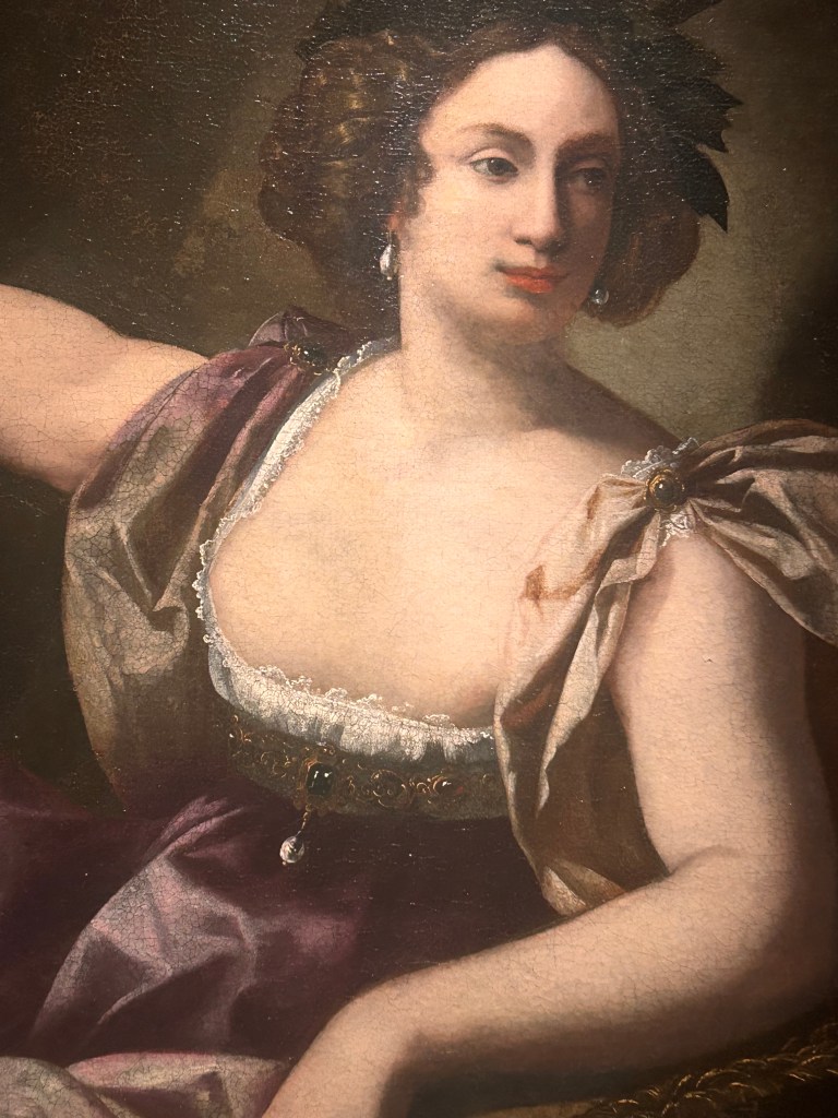 Allora la mostra: diciamo meh. O meglio. Il titolo Artemisia Gentileschi, coraggio e passione, in effetti è un po’ fuorviante. Di una cinquantina di quadri, una ventina sono di Artemisia, compresi quelli di recente attribuzione, alcuni del padre (pochi per la verità) cinque o sei dei caravaggeschi liguri di cui sinceramente potevamo fare a meno, il resto sono di contemporanei che hanno trattato gli stessi temi. L’altro punto debole è l’allestimento: oscilla tra il criterio cronologico e quello tematico, li usa tutti e due e tu pensi ah questo è del periodo toscano, poi leggi le didascalie (tutte interessanti e ben argomentate, o l’app, ben fatta) e scopri che lo ha dipinto a Napoli. Di Giuditte e Oloferni ce ne sono almeno quattro. C’è da dire però che i quadri di Artemisia sono per la maggior parte davvero splendidi.