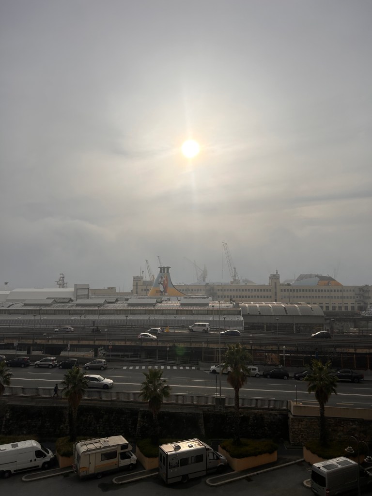 Dopo il lauto pasto all’Archivolto Mongiardino (nel vico omonimo – buonissimo, ma ovviamente gli amici genovesi avevano prenotato un ristorante tipico) ci hanno portato in giro per i vicoli, al Duomo, a San Luca e a San Sisto, ai giardini Luzzati, a vedere la vista sul porto preda della caligo, alla facoltà di architettura che è in una splendida chiesa sconsacrata, a occhieggiare palazzi che non avevamo potuto vedere durante la visita ai Rolli, e la deliziosa chiesa di San Pietro in banchi.