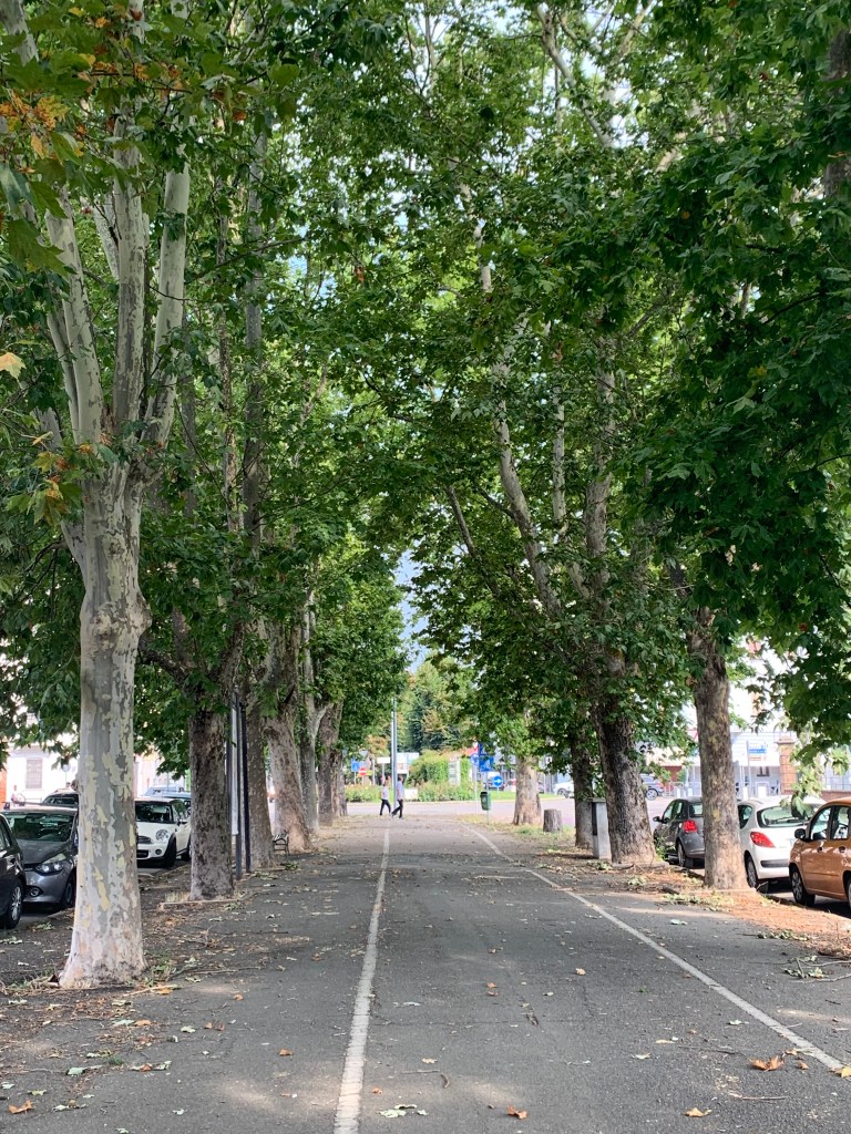 Al mattino presto non c’erano ancora le folate di aria calda che caratterizzano queste giornate. Passando sotto la galleria di alberi degli spalti mi ha colpito il rumore incessante delle cicale che cantavano già. Sembra che ci siano cicale nascoste in ogni piccolo pezzo di verde disponibile, sotto gli alberi dei viali, nei giardini, persino tra le rigogliose erbacce del nostro cortile, dove la temperatura alle 13 è ben oltre i quaranta gradi.