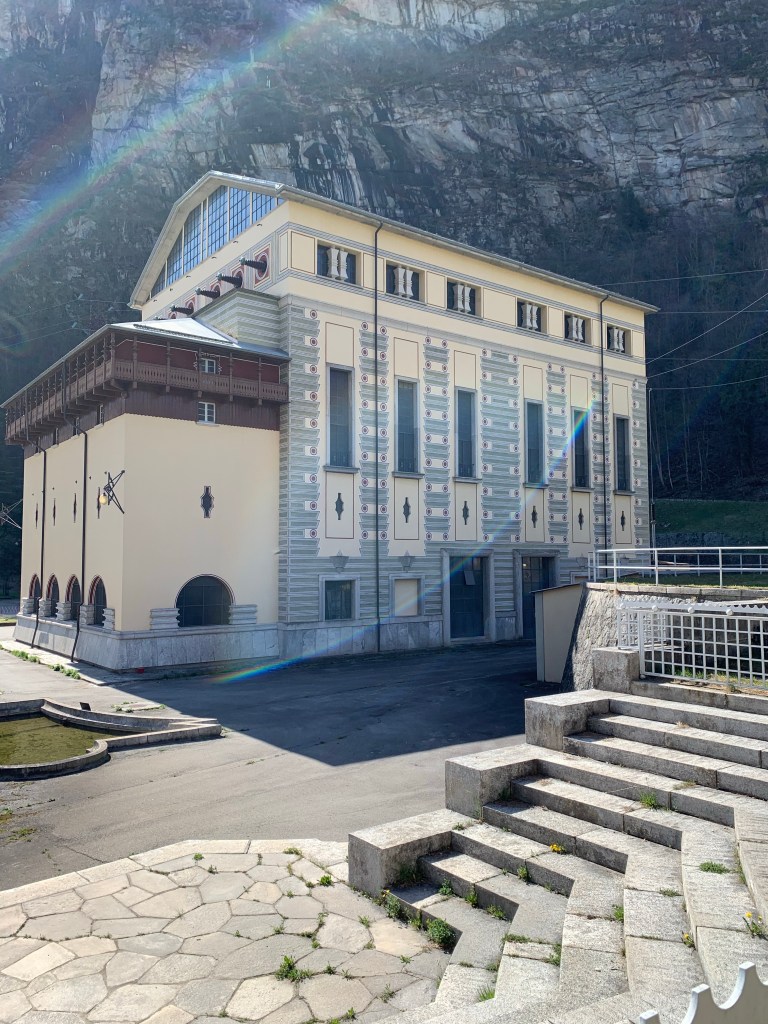 Dale fotografie è facile notare gli elementi comuni a tutte le centrali elettriche di Portaluppi, soprattutto nella decorazione delle finestre. Nella foto a destra, anche se schiacciata dalla prospettiva del grandangolo, si vede la grande cascata del Toce, che già da inizio secolo fu sfruttata per la produzione di energia idroelettrica. Ancora oggi, in estate la cascata viene aperta o chiusa secondo un orario preciso, che trovate facilmente su internet.