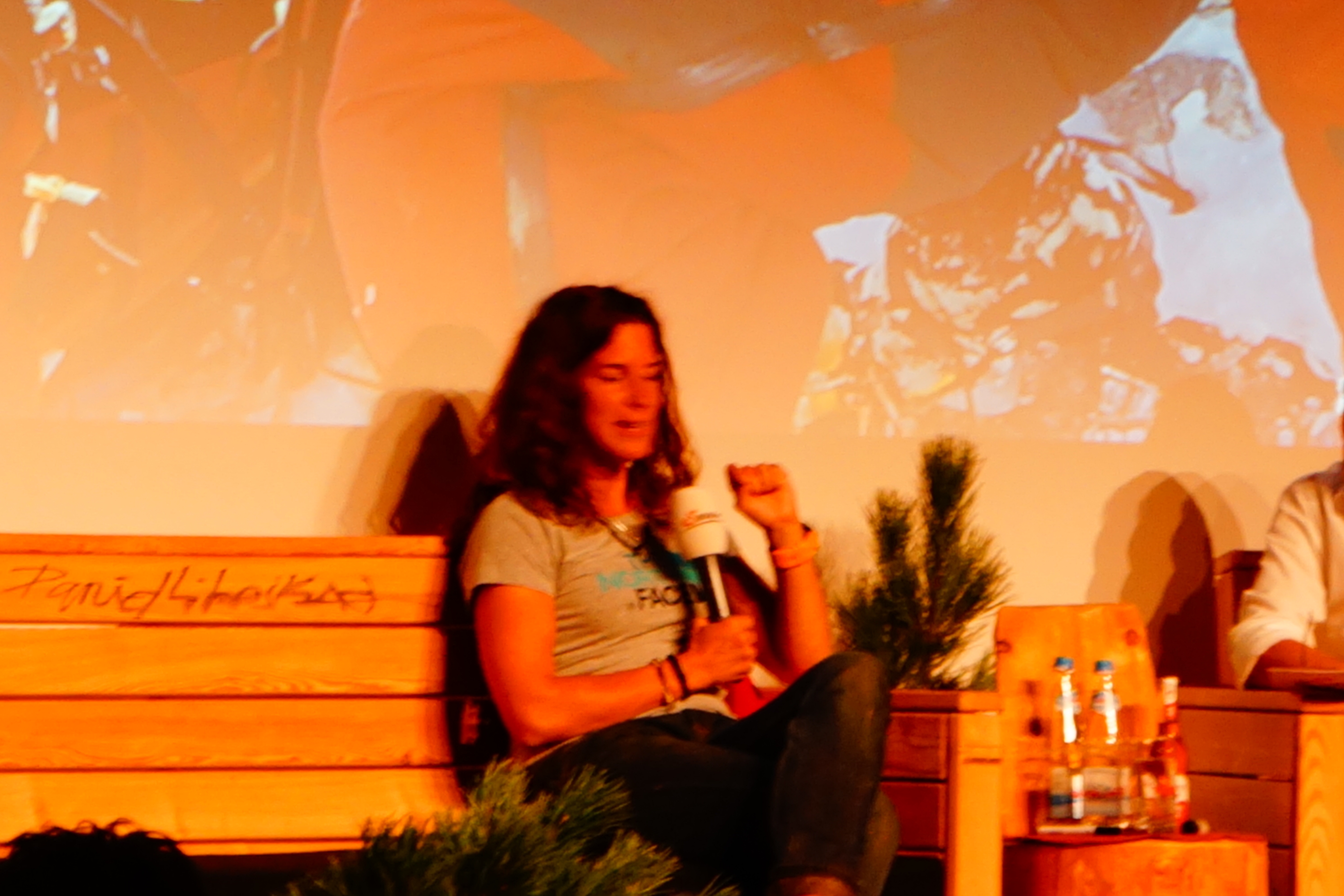 In occasione dell’IMS (International Mountain Summit) di Bressanone ho incontrato Tamara Lunger, protagonista della presentazione di sabato 13 ottobre, per parlare delle sue passioni , dei suoi progetti, del suo futuro. L’ho incontrata nella hall del Brixen Forum, in mezzo ai musicisti che preparavano il sound check per la serata. Tamara è arrivata dalla Walk and Talk del giorno al rifugio Santa Croce di Lazfons, sorridente e gentilissima, e molto dispiaciuta per il disguido del giorno precedente quando era saltato l’appuntamento organizzato dall’ IMS. C’è rumore, ma non avendo in programma dirette multimediali, a cui peraltro sembra molto più abituata, possiamo parlare tranquillamente. L’unico mezzo elettronico funzionante è l’IPhone che registra perfettamente il nostro discorso, e la mia Canon.